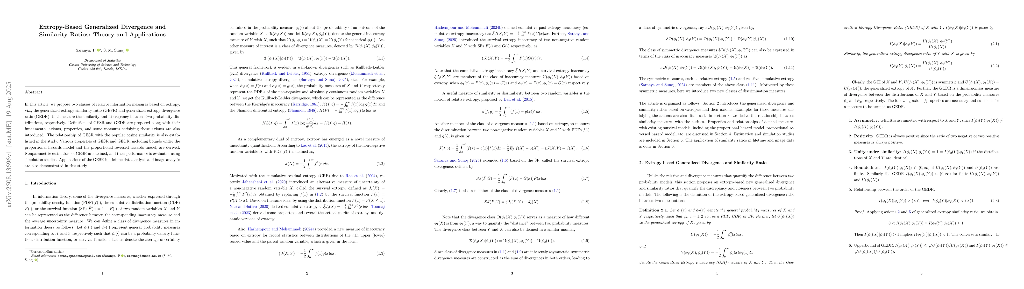 This research introduces two new information measures, Generalized Extropy Similarity Ratio (GESR) and Generalized Extropy Divergence Ratio (GEDR), based on extropy theory. These measures quantify similarity and discrepancy between probability distributions, with applications in lifetime data analysis and image processing, supported by simulation studies and theoretical bounds.