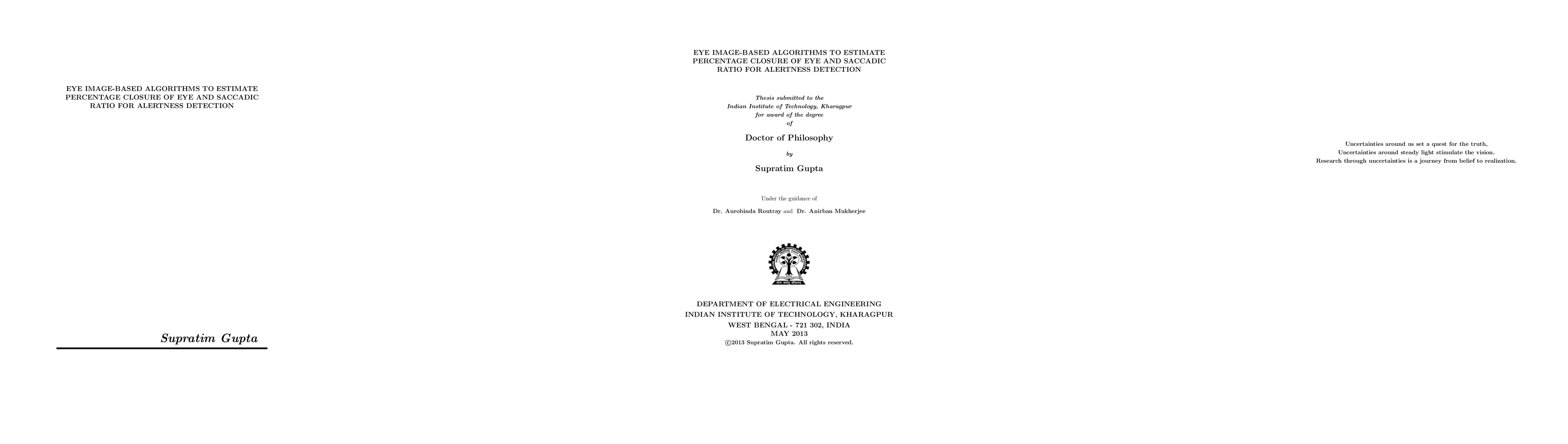 The current research work has developed two novel algorithms for image-based measurement of Percentage Closure of Eyes-PERCLOS and Saccadic Ratio-SR. The PERCLOS is estimated by correlation filter-based technique. An innovative combination of gray scale and Near Infrared sensitive camera with passive NIR illuminator helps to achieve higher accuracy than the existing art. Two novel techniques have been developed for the detection of iris centre and eye corners. We propose an index called Form Factor to find the iris position. The saccadic velocity profile can be estimated from the temporal information of the iris positions using standard tracking algorithm such as Extended Kalman filter. Experimental results indicate that the estimation of both SR and PERCLOS can predict the level of alertness of an operator from onset of diminished alertness to fatigue.