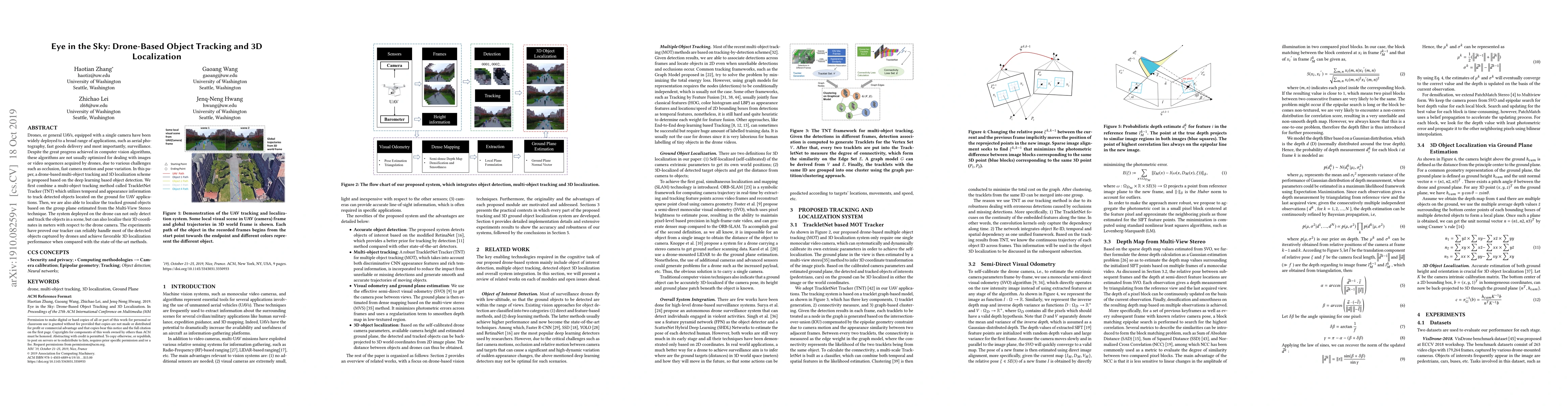 A deep learning-based object detection method is proposed for drone-based multi-object tracking and 3D localization.