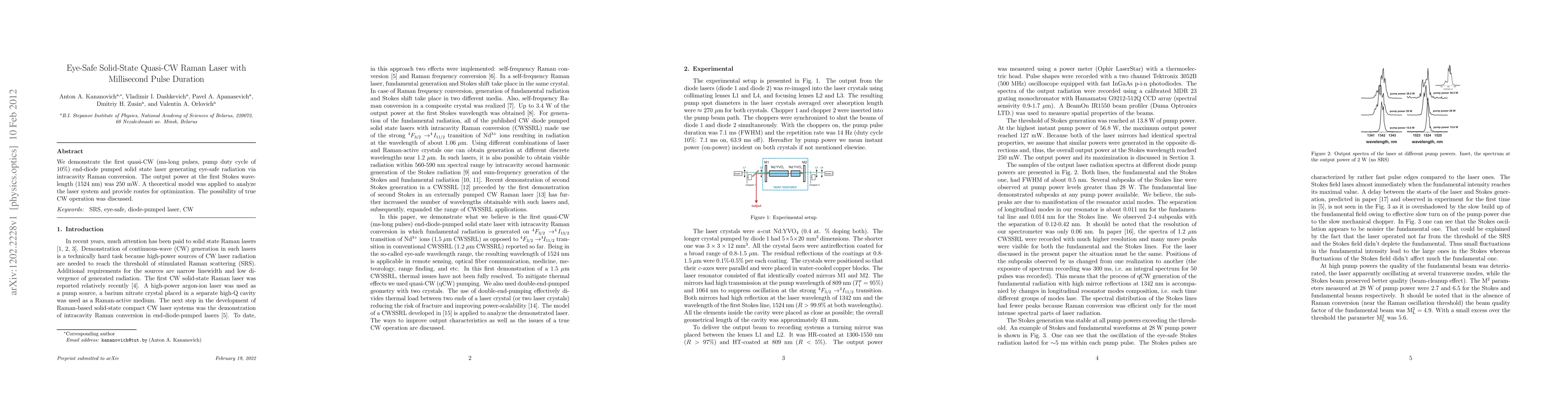 We demonstrate the first quasi-CW (ms-long pulses, pump duty cycle of 10%) end-diode pumped solid state laser generating eye-safe radiation via intracavity Raman conversion. The output power at the first Stokes wavelength (1524 nm) was 250 mW. A theoretical model was applied to analyze the laser system and provide routes for optimization. The possibility of true CW operation was discussed.