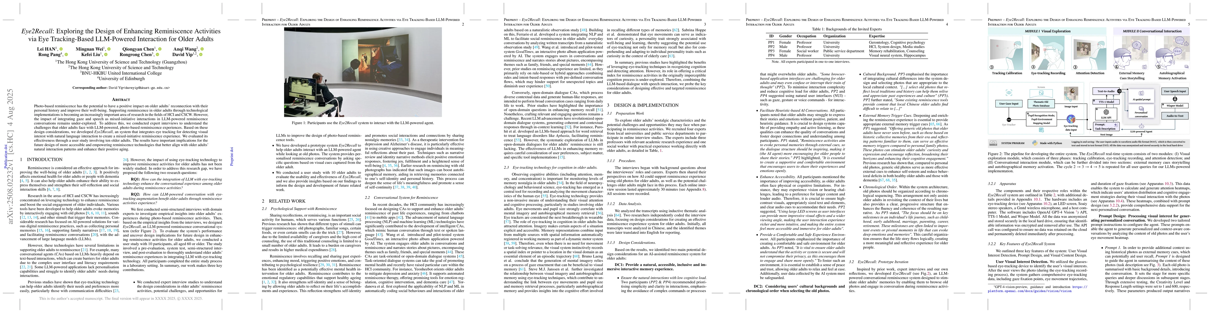 The research employed expert interviews to understand challenges older adults face with LLM-powered, photo-based reminiscence experiences, followed by the development of Eye2Recall, a system integrating eye tracking and natural language interaction for mixed-initiative reminiscence experiences. A user study with ten older adults evaluated its effectiveness.