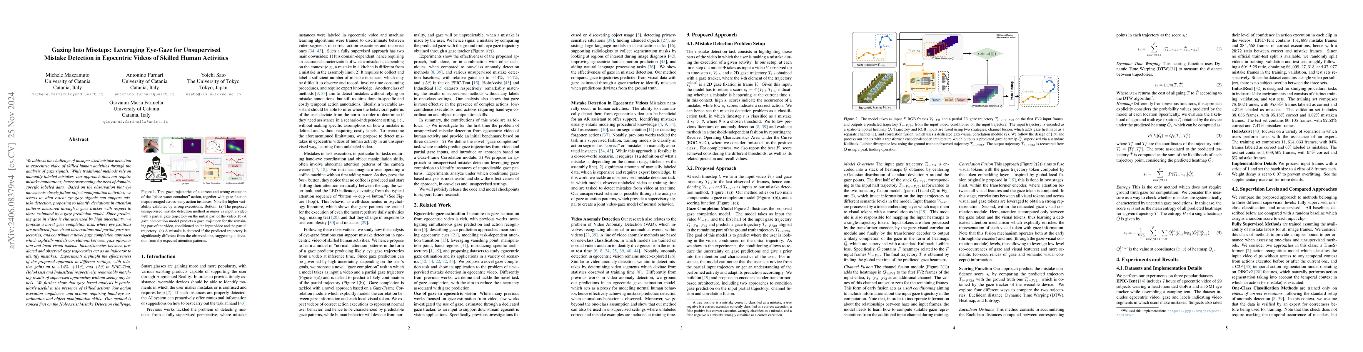 In this paper, we address the challenge of unsupervised mistake detection in egocentric video through the analysis of gaze signals, a critical component for advancing user assistance in smart glasses. Traditional supervised methods, reliant on manually labeled mistakes, suffer from domain-dependence and scalability issues. This research introduces an unsupervised method for detecting mistakes in videos of human activities, overcoming the challenges of domain-specific requirements and the necessity for annotated data. By analyzing unusual gaze patterns that signal user disorientation during tasks, we propose a gaze completion model that forecasts eye gaze trajectories from incomplete inputs. The difference between the anticipated and observed gaze paths acts as an indicator for identifying errors. Our method is validated on the EPIC-Tent dataset, showing its superiority compared to current one-class supervised and unsupervised techniques.