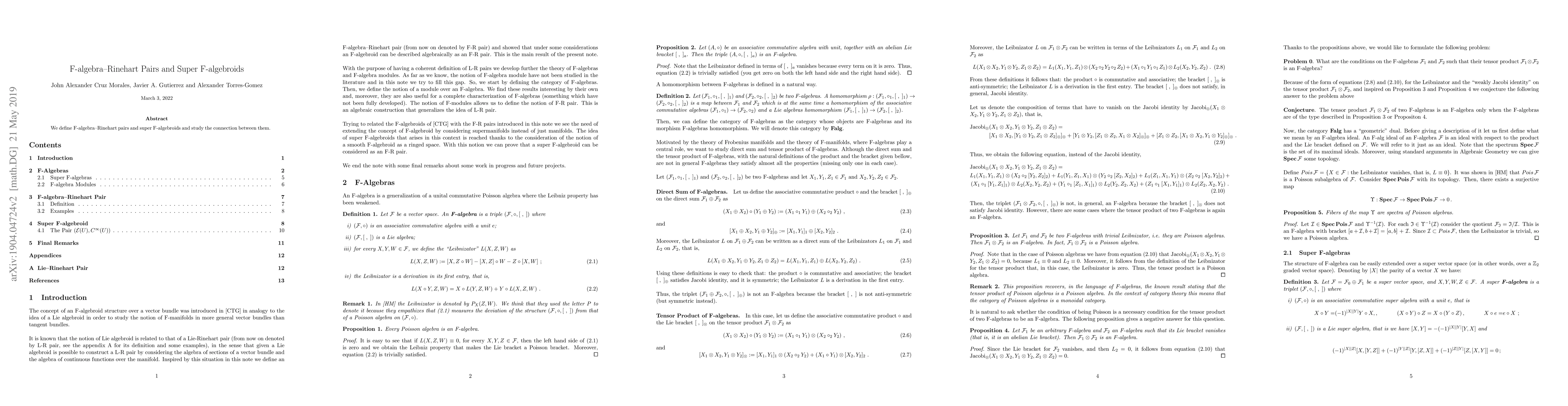 This research introduces F-algebra--Rinehart pairs and super F-algebroids, exploring their relationship, which could deepen understanding in mathematical structures and their applications.