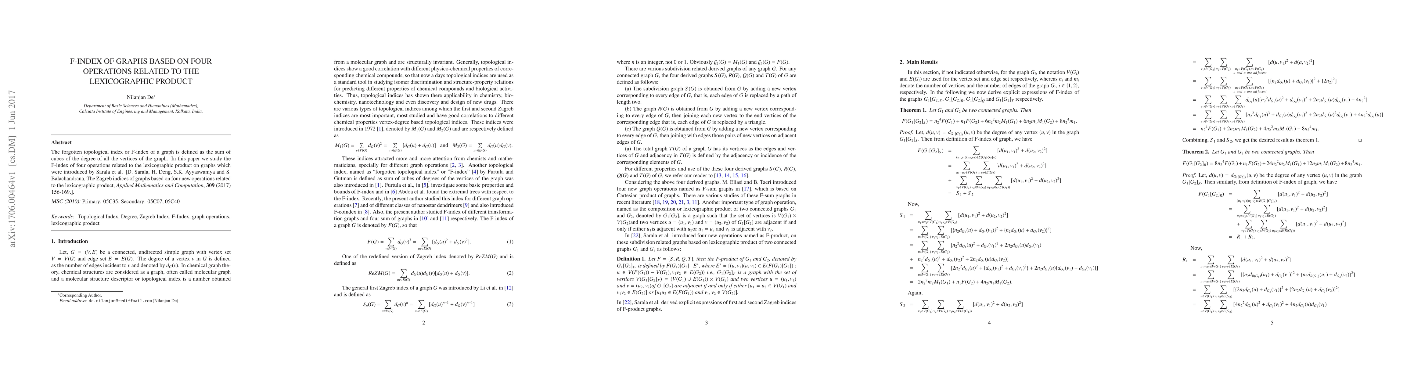 The forgotten topological index or F-index of a graph is defined as the sum of cubes of the degree of all the vertices of the graph. In this paper we study the F-index of four operations related to the lexicographic product on graphs which were introduced by Sarala et al. [D. Sarala, H. Deng, S.K. Ayyaswamya and S. Balachandrana, The Zagreb indices of graphs based on four new operations related to the lexicographic product, \textit{Applied Mathematics and Computation}, 309 (2017) 156--169.].