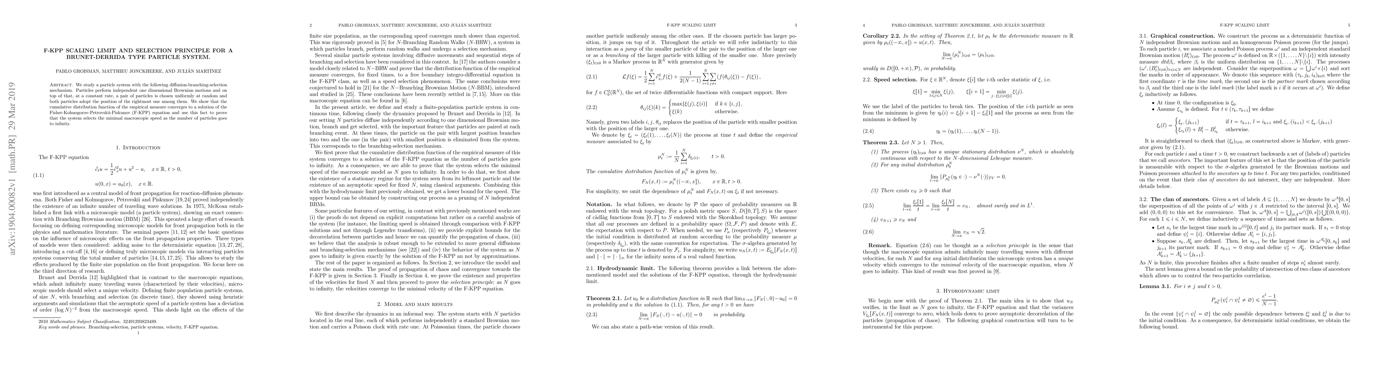 We study a particle system with the following diffusion-branching-selection mechanism. Particles perform independent one dimensional Brownian motions and on top of that, at a constant rate, a pair of particles is chosen uniformly at random and both particles adopt the position of the rightmost one among them. We show that the cumulative distribution function of the empirical measure converges to a solution of the Fisher-Kolmogorov-Petrovskii-Piskunov (F-KPP) equation and use this fact to prove that the system selects the minimal macroscopic speed as the number of particles goes to infinity.