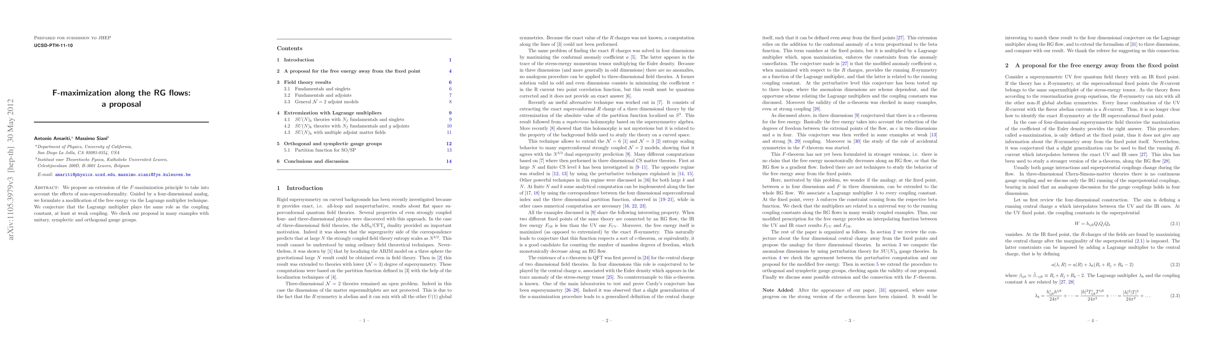 The paper introduces a modified free energy incorporating Lagrange multipliers to account for non-superconformality effects in RG flows, providing a new perspective on the F-maximization principle.