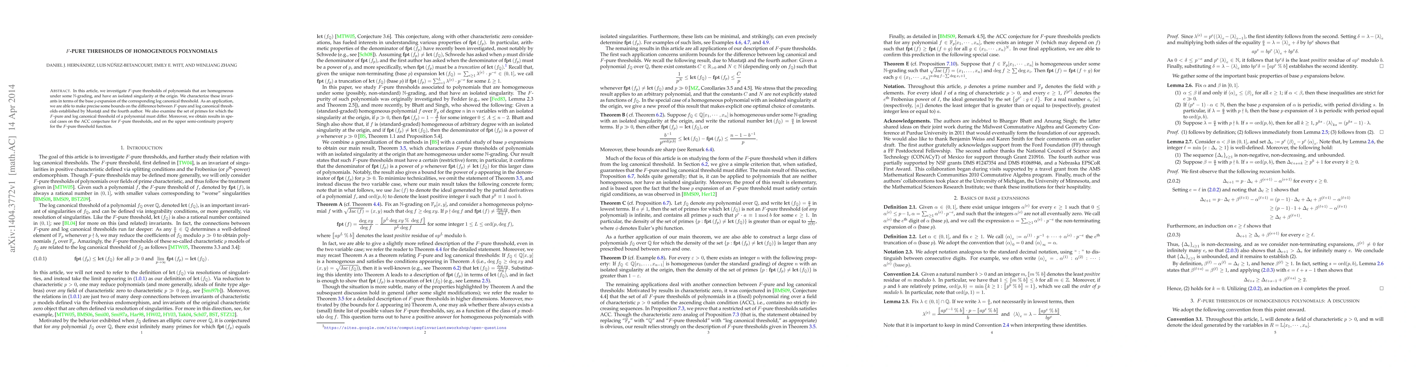 This paper investigates F-pure thresholds for homogeneous polynomials with isolated singularities, characterizing these invariants using base p expansions of log canonical thresholds. It establishes bounds on the difference between F-pure and log canonical thresholds and explores primes where these thresholds differ, while also addressing the ACC conjecture and upper semi-continuity for F-pure thresholds.