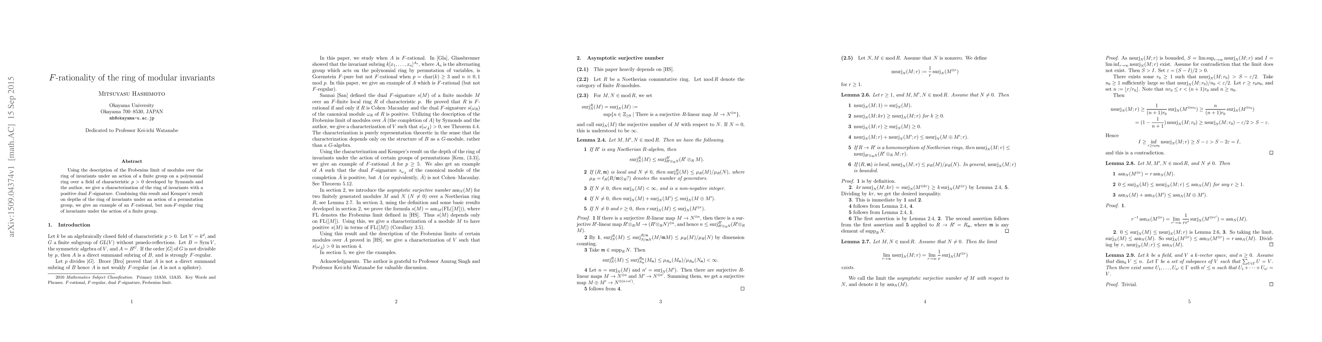 This paper characterizes rings of modular invariants with a positive dual $F$-signature, providing an example of an $F$-rational but non-$F$-regular invariant ring under a finite group action, combining results from Symonds and Kemper.