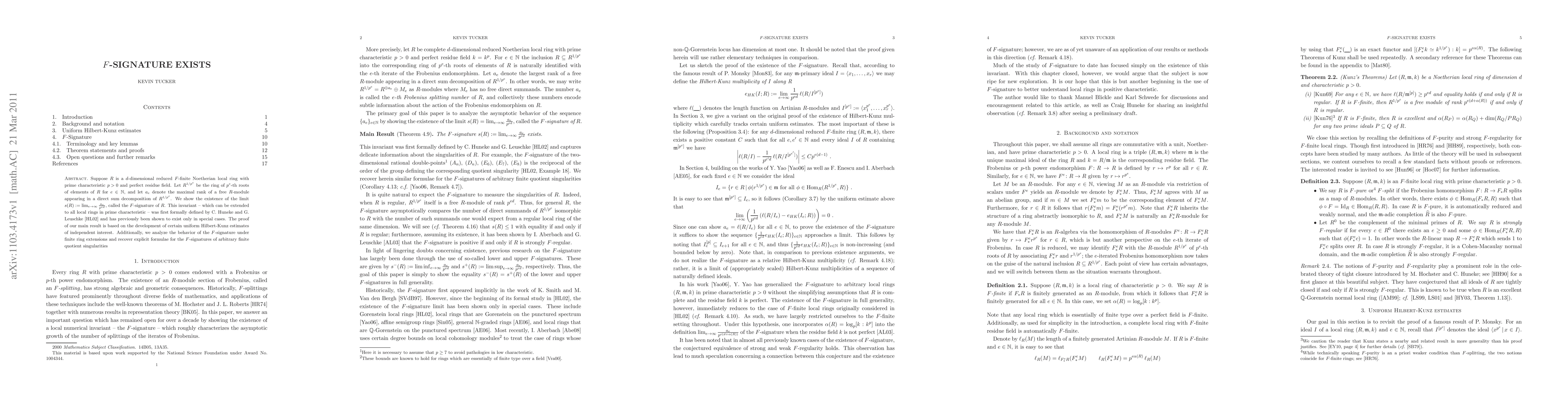 Researchers have proven the existence of an invariant called the F-signature for Noetherian local rings with prime characteristic, which describes the growth of iterates of the Frobenius endomorphism and has implications for understanding ring splittings.