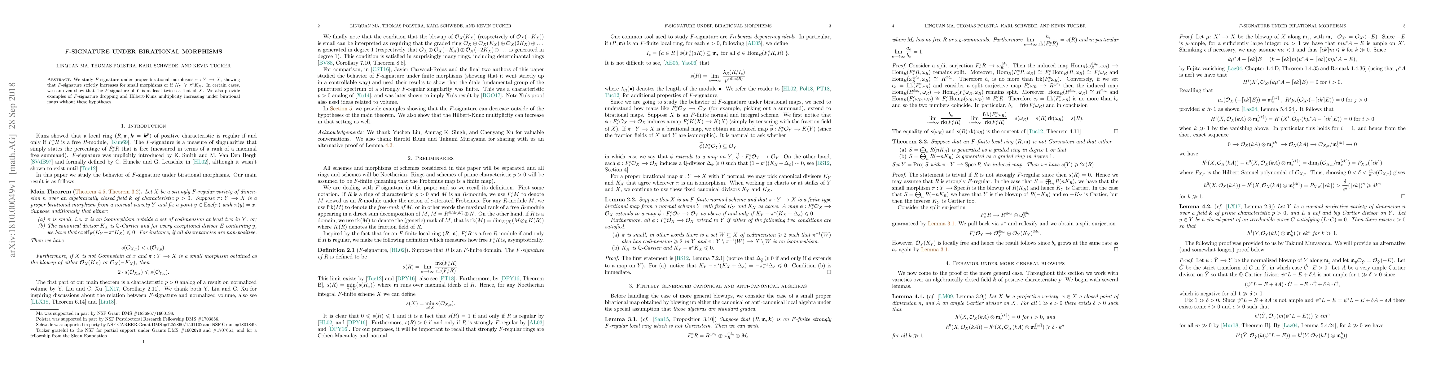 This paper investigates the behavior of $F$-signature under birational morphisms, demonstrating that it strictly increases for small morphisms or when the canonical divisor of the source is greater than or equal to the pullback of the target's canonical divisor. It also provides examples where $F$-signature decreases despite the birational map.