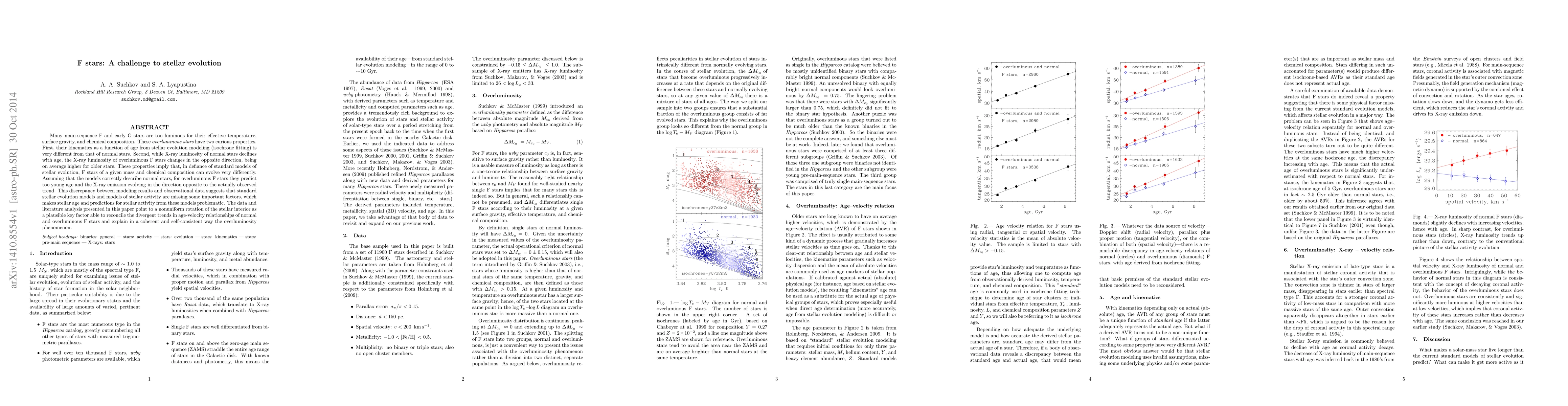 Many main-sequence F and early G stars are too luminous for their effective temperature, surface gravity, and chemical composition. These {\it overluminous stars} have two curious properties. First, their kinematics as a function of age from stellar evolution modeling (isochrone fitting) is very different from that of normal stars. Second, while X-ray luminosity of normal stars declines with age, the X-ray luminosity of overluminous F stars changes in the opposite direction, being on average higher for older stars. These properties imply that, in defiance of standard models of stellar evolution, F stars of a given mass and chemical composition can evolve very differently. Assuming that the models correctly describe normal stars, for overluminous F stars they predict too young age and the X-ray emission evolving in the direction opposite to the actually observed trend. This discrepancy between modeling results and observational data suggests that standard stellar evolution models and models of stellar activity are missing some important factors, which makes stellar age and predictions for stellar activity from these models problematic. The data and literature analysis presented in this paper point to a nonuniform rotation of the stellar interior as a plausible key factor able to reconcile the divergent trends in age-velocity relationships of normal and overluminous F stars and explain in a coherent and self-consistent way the overluminosity phenomenon.