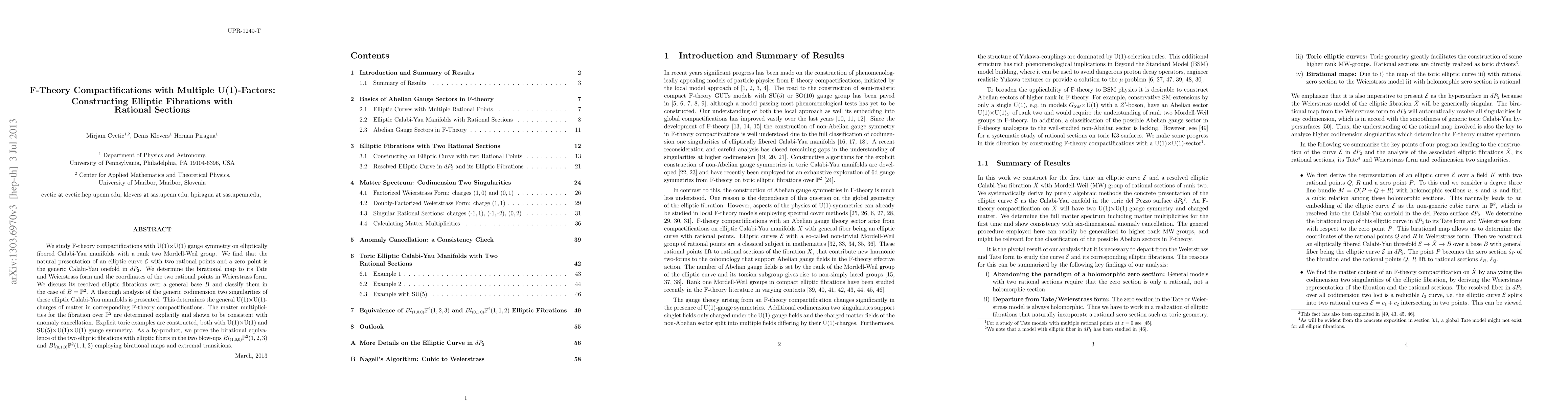 This paper explores F-theory compactifications featuring U(1)xU(1) gauge symmetry on elliptic Calabi-Yau manifolds with a rank two Mordell-Weil group, focusing on the construction of elliptic fibrations with rational sections and their resolved forms. The study includes a detailed analysis of codimension two singularities and the determination of matter multiplicities, proving birational equivalence of specific elliptic fibrations.