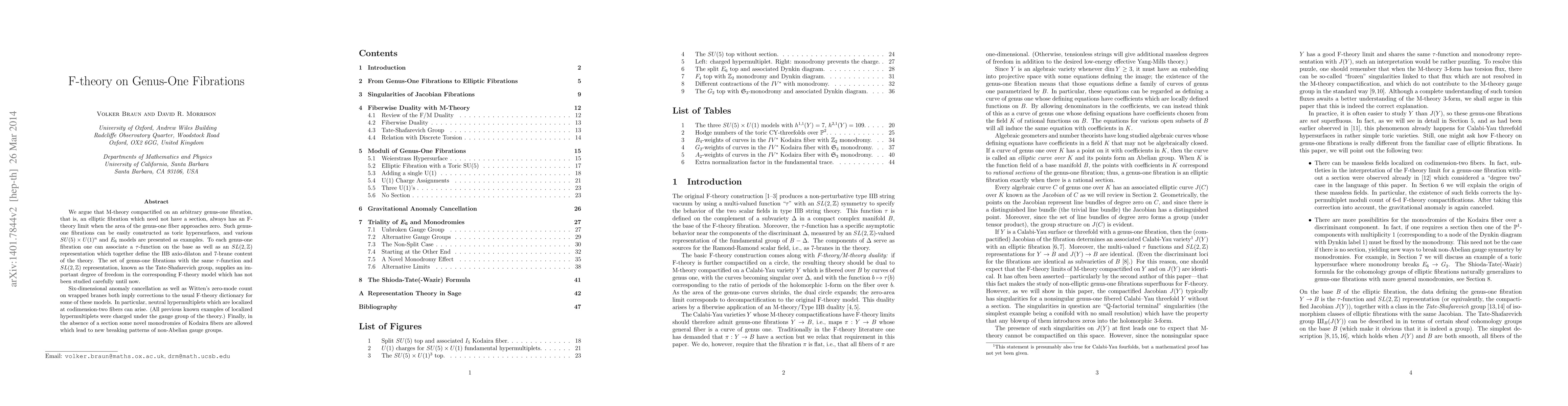 We argue that M-theory compactified on an arbitrary genus-one fibration, that is, an elliptic fibration which need not have a section, always has an F-theory limit when the area of the genus-one fiber approaches zero. Such genus-one fibrations can be easily constructed as toric hypersurfaces, and various $SU(5)\times U(1)^n$ and $E_6$ models are presented as examples. To each genus-one fibration one can associate a $\tau$-function on the base as well as an $SL(2,\mathbb{Z})$ representation which together define the IIB axio-dilaton and 7-brane content of the theory. The set of genus-one fibrations with the same $\tau$-function and $SL(2,\mathbb{Z})$ representation, known as the Tate-Shafarevich group, supplies an important degree of freedom in the corresponding F-theory model which has not been studied carefully until now. Six-dimensional anomaly cancellation as well as Witten's zero-mode count on wrapped branes both imply corrections to the usual F-theory dictionary for some of these models. In particular, neutral hypermultiplets which are localized at codimension-two fibers can arise. (All previous known examples of localized hypermultiplets were charged under the gauge group of the theory.) Finally, in the absence of a section some novel monodromies of Kodaira fibers are allowed which lead to new breaking patterns of non-Abelian gauge groups.