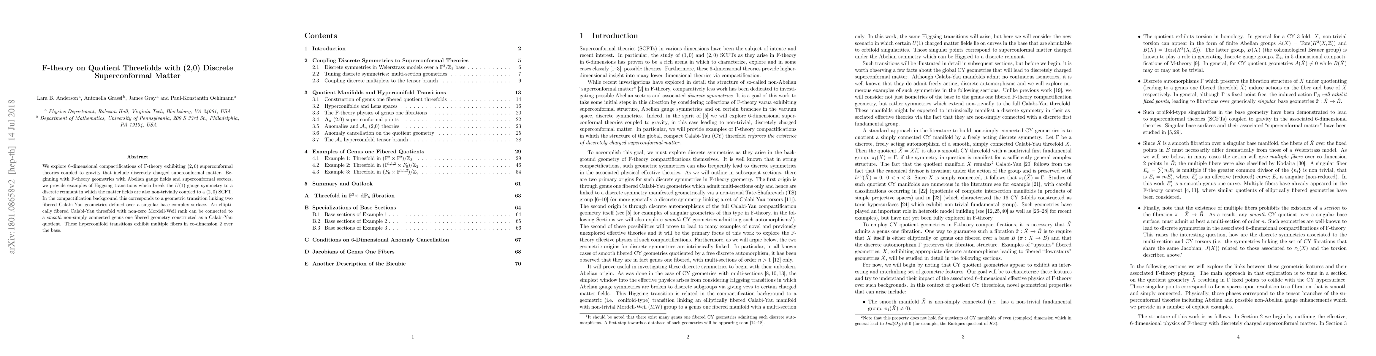 We explore 6-dimensional compactifications of F-theory exhibiting (2,0) superconformal theories coupled to gravity that include discretely charged superconformal matter. Beginning with F-theory geometries with Abelian gauge fields and superconformal sectors, we provide examples of Higgsing transitions which break the $U(1)$ gauge symmetry to a discrete remnant in which the matter fields are also non-trivially coupled to a (2,0) SCFT. In the compactification background this corresponds to a geometric transition linking two fibered Calabi-Yau geometries defined over a singular base complex surface. An elliptically fibered Calabi-Yau threefold with non-zero Mordell-Weil rank can be connected to a smooth non-simply connected genus one fibered geometry constructed as a Calabi-Yau quotient. These hyperconifold transitions exhibit multiple fibers in co-dimension 2 over the base.