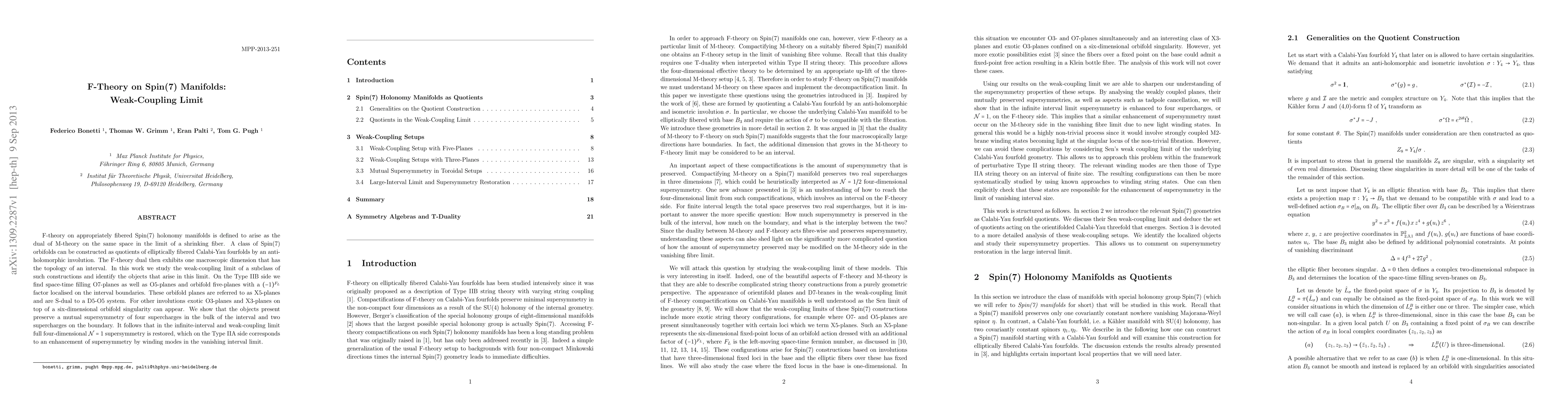 The paper presents a detailed analysis of weak-coupling limits of F-theory on Spin(7) manifolds, identifying various exotic objects and analyzing their supersymmetry properties, which extends our understanding of string dualities and compactifications.