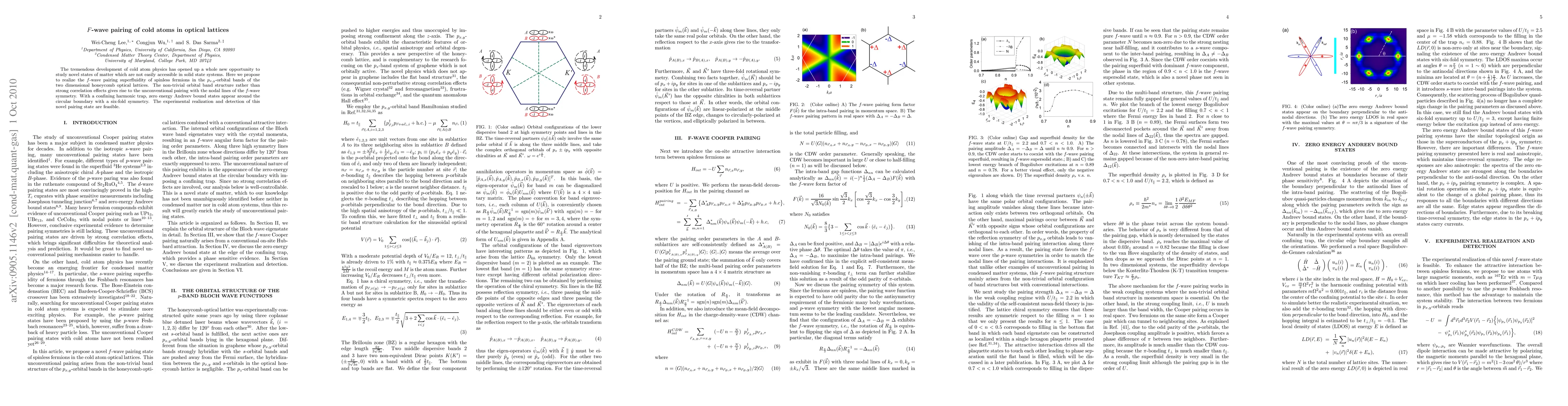This paper proposes a method to realize $f$-wave pairing superfluidity of spinless fermions in two-dimensional honeycomb optical lattices, driven by non-trivial orbital band structures rather than strong correlations. The study highlights the feasibility of detecting this unconventional pairing state with zero energy Andreev bound states in a harmonic trap.