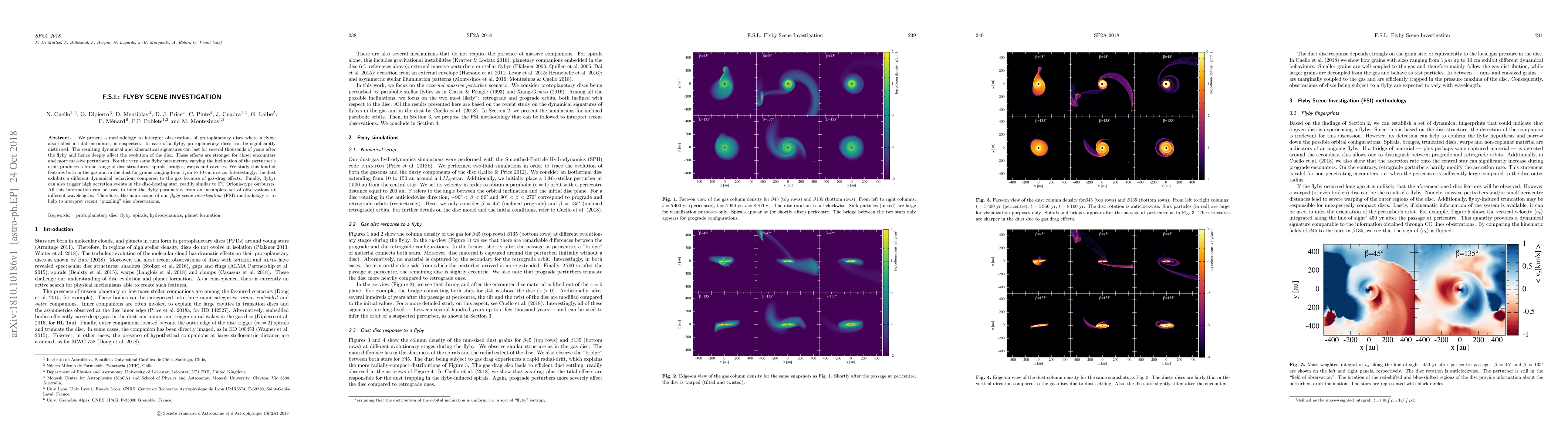 The paper introduces a methodology for interpreting protoplanetary disc observations affected by flybys, detailing the long-lasting dynamical and kinematical signatures, and the varied structures in gas and dust caused by different flyby parameters. The FSI methodology aims to infer flyby parameters from incomplete observations to better understand puzzling disc phenomena.