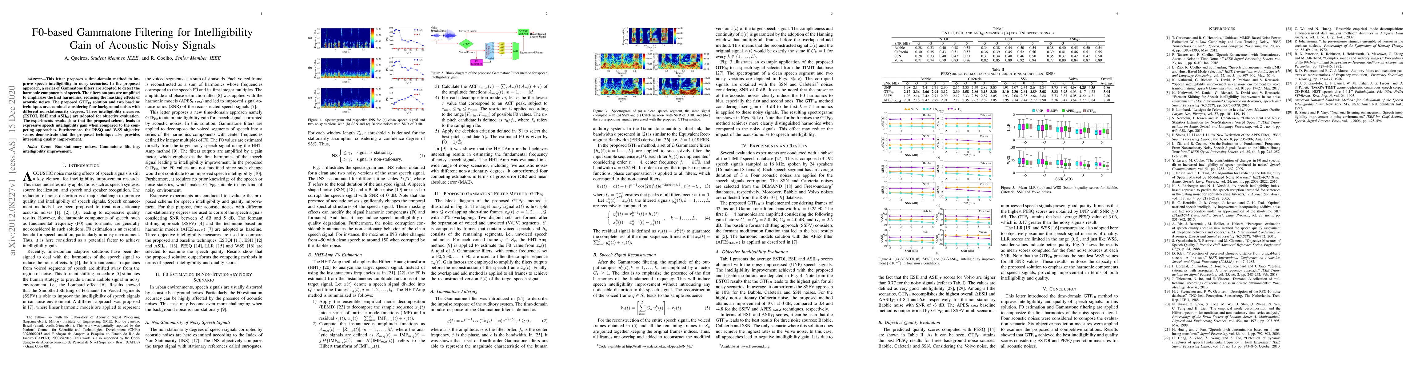 This paper proposes a time-domain method to improve speech intelligibility in noisy scenarios. In the proposed approach, a series of Gammatone filters are adopted to detect the harmonic components of speech. The filters outputs are amplified to emphasize the first harmonics, reducing the masking effects of acoustic noises. The proposed GTFF0 solution and two baseline techniques are examined considering four background noises with different non-stationarity degrees. Three intelligibility measures (ESTOI, ESII and ASIIST) are adopted for objective evaluation. The experiments results show that the proposed scheme leads to expressive speech intelligibility gain when compared to the competing approaches. Furthermore, the PESQ and WSS objective scores demonstrate that the proposed technique also provides interesting quality improvement.