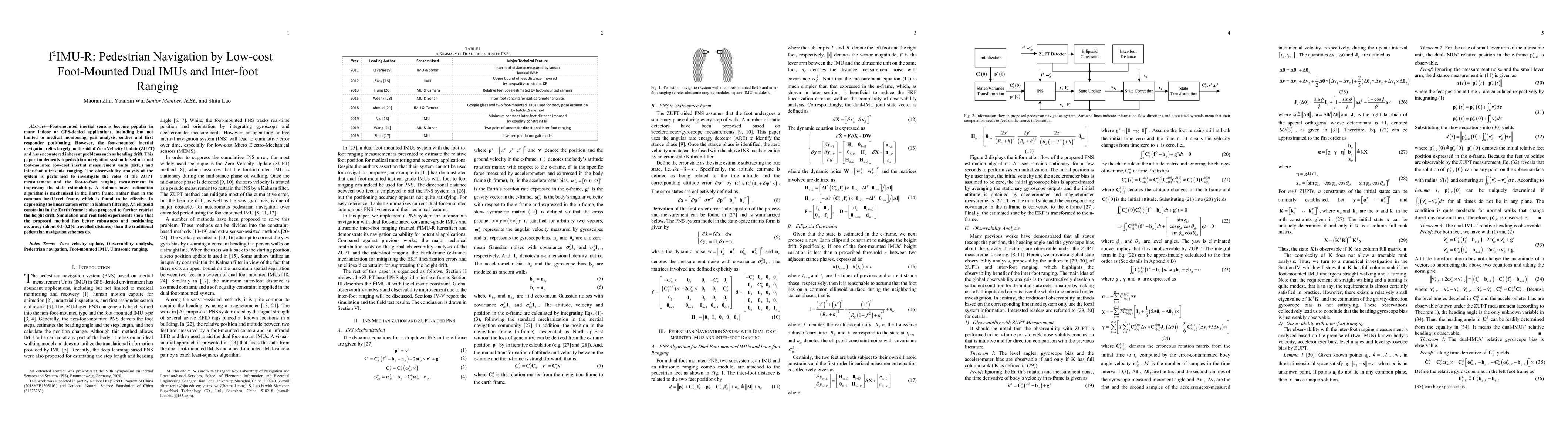A pedestrian navigation system using low-cost foot-mounted IMUs and inter-foot ultrasonic ranging improves positioning accuracy by 0.1-0.2% compared to traditional methods.