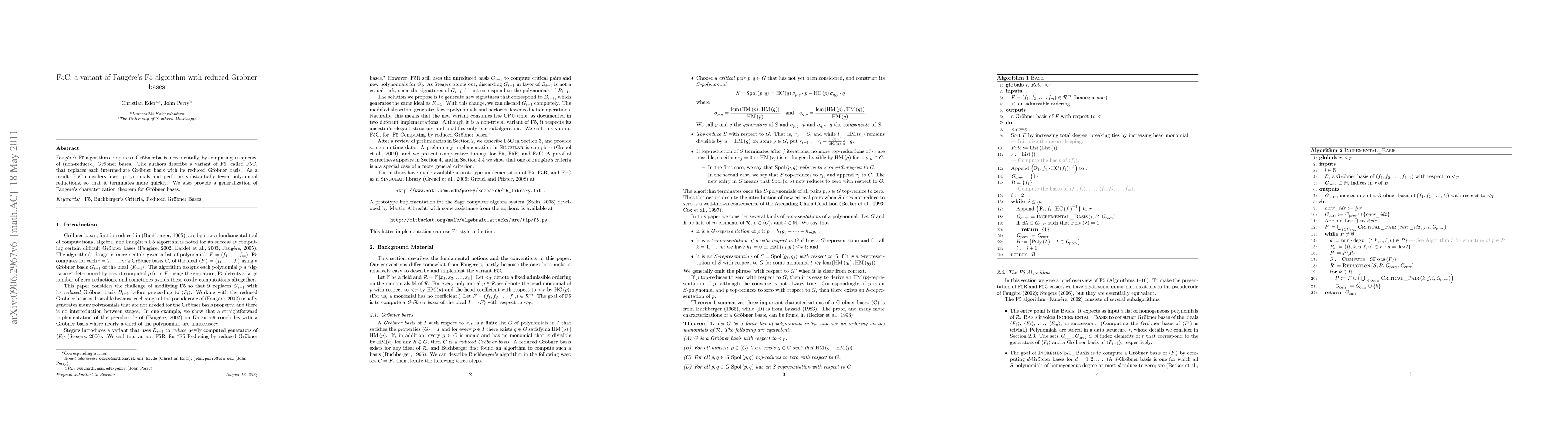 Faugere's F5 algorithm computes a Groebner basis incrementally, by computing a sequence of (non-reduced) Groebner bases. The authors describe a variant of F5, called F5C, that replaces each intermediate Groebner basis with its reduced Groebner basis. As a result, F5C considers fewer polynomials and performs substantially fewer polynomial reductions, so that it terminates more quickly. We also provide a generalization of Faugere's characterization theorem for Groebner bases.