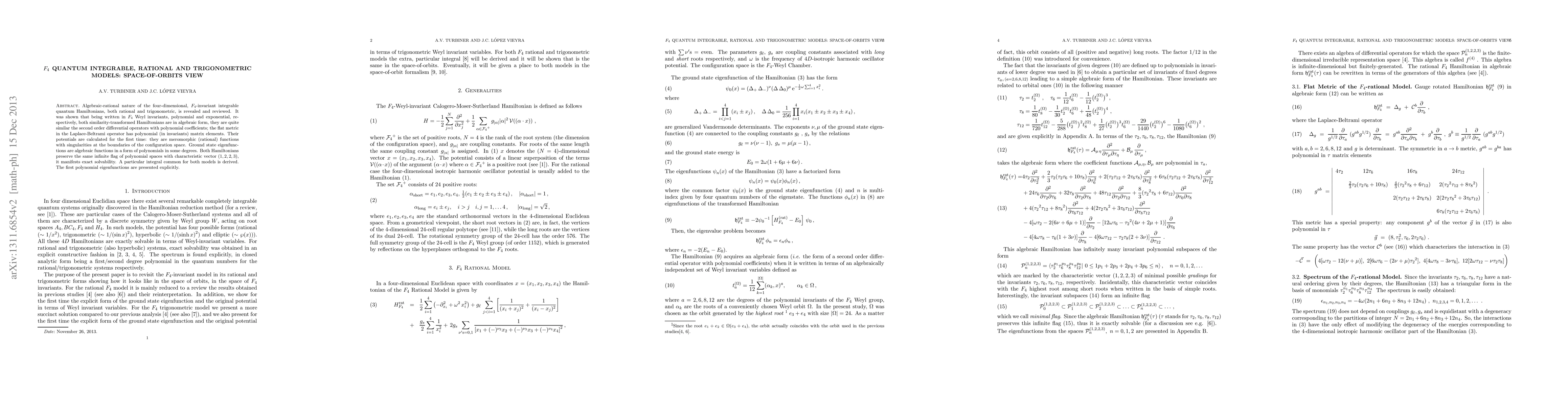 Researchers have discovered that four-dimensional quantum Hamiltonians with F_4 symmetry exhibit algebraic-rational properties, revealing similar structures to second-order differential operators and polynomial functions.