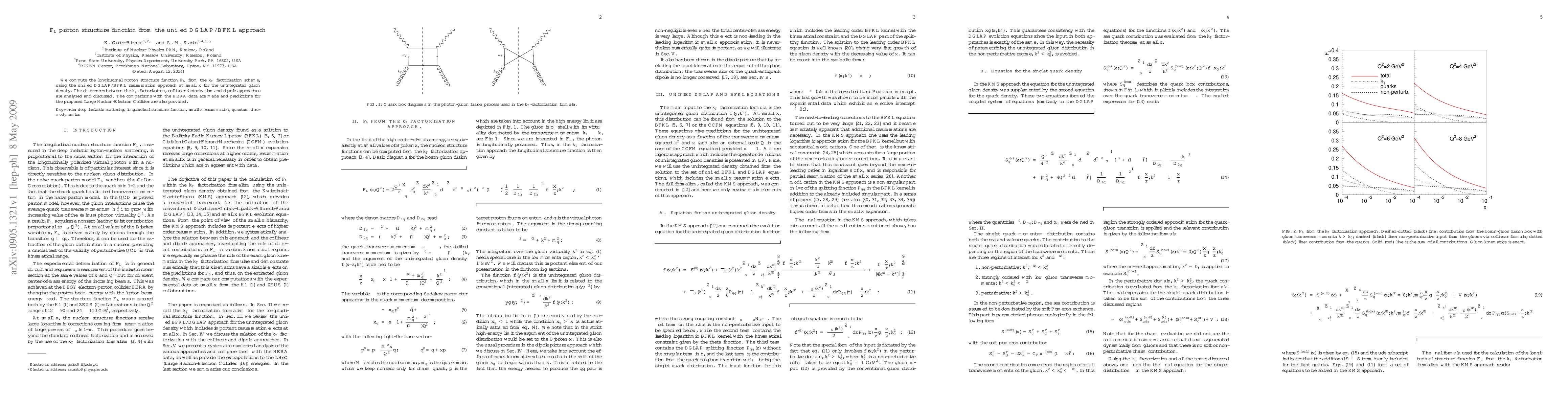 This paper computes the longitudinal proton structure function F_L using the unified DGLAP/BFKL resummation approach at small x, comparing results from k_T factorization with collinear and dipole approaches, and provides predictions for the Large Hadron-Electron Collider alongside comparisons with HERA data.
