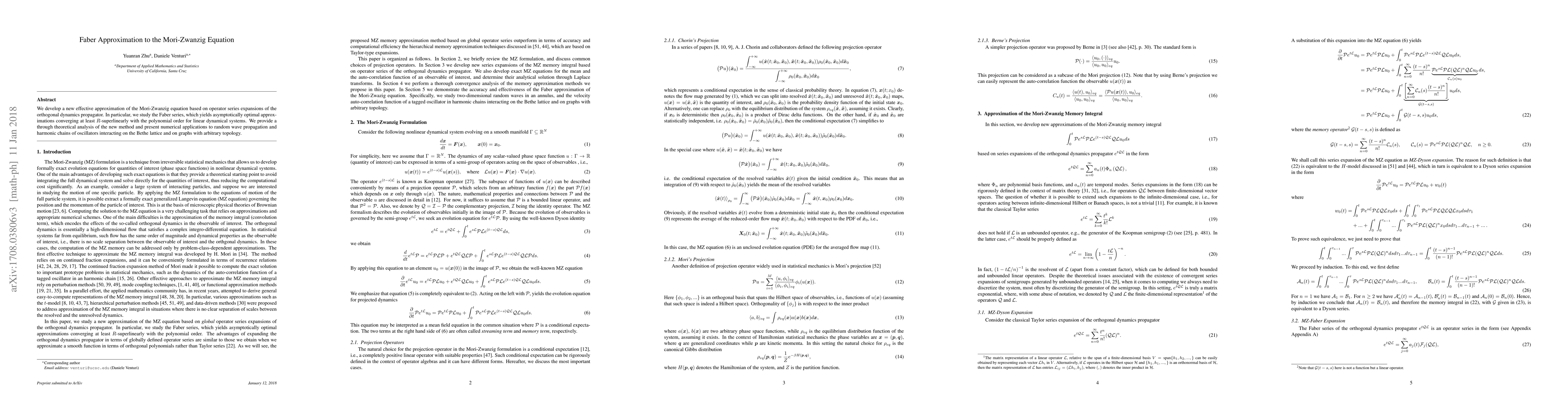 We develop a new effective approximation of the Mori-Zwanzig equation based on operator series expansions of the orthogonal dynamics propagator. In particular, we study the Faber series, which yields asymptotically optimal approximations converging at least $R$-superlinearly with the polynomial order for linear dynamical systems. We provide a through theoretical analysis of the new method and present numerical applications to random wave propagation and harmonic chains of oscillators interacting on the Bethe lattice and on graphs with arbitrary topology.