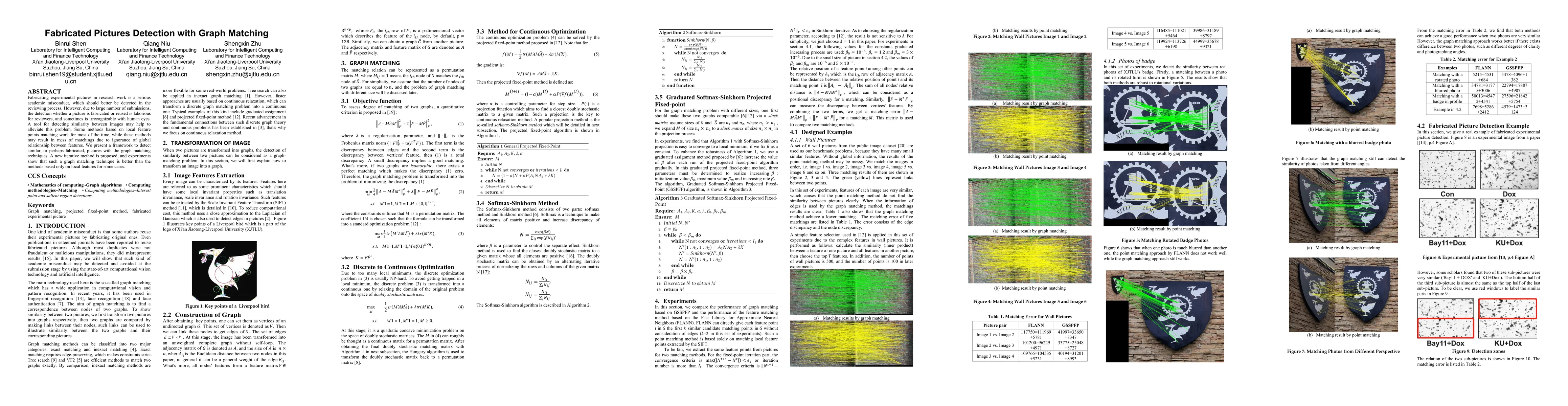 Fabricating experimental pictures in research work is a serious academic misconduct, which should better be detected in the reviewing process. However, due to large number of submissions, the detection whether a picture is fabricated or reused is laborious for reviewers, and sometimes is indistinct with human eyes. A tool for detecting similarity between images may help to alleviate this problem. Some methods based on local feature points matching work for most of the time, while these methods may result in mess of matchings due to ignorance of global relationship between features. We present a framework to detect similar, or perhaps fabricated, pictures with the graph matching techniques. A new iterative method is proposed, and experiments show that such a graph matching technique is better than the methods based only on local features for some cases.