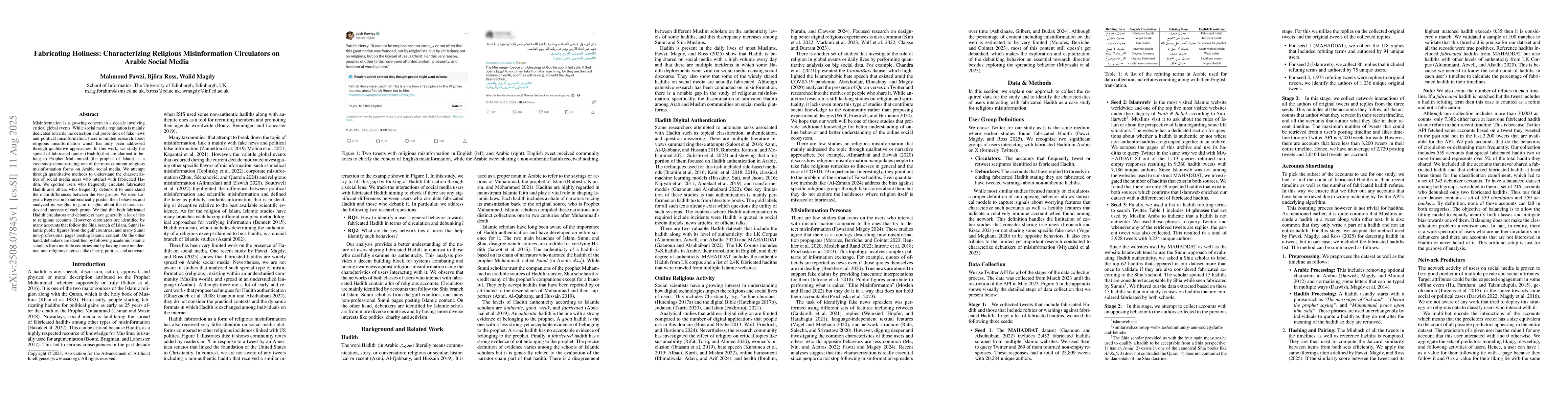 This work is the first to quantitatively study religious misinformation, focusing on fabricated Hadith and the characteristics of users interacting with it, unlike previous qualitative studies.