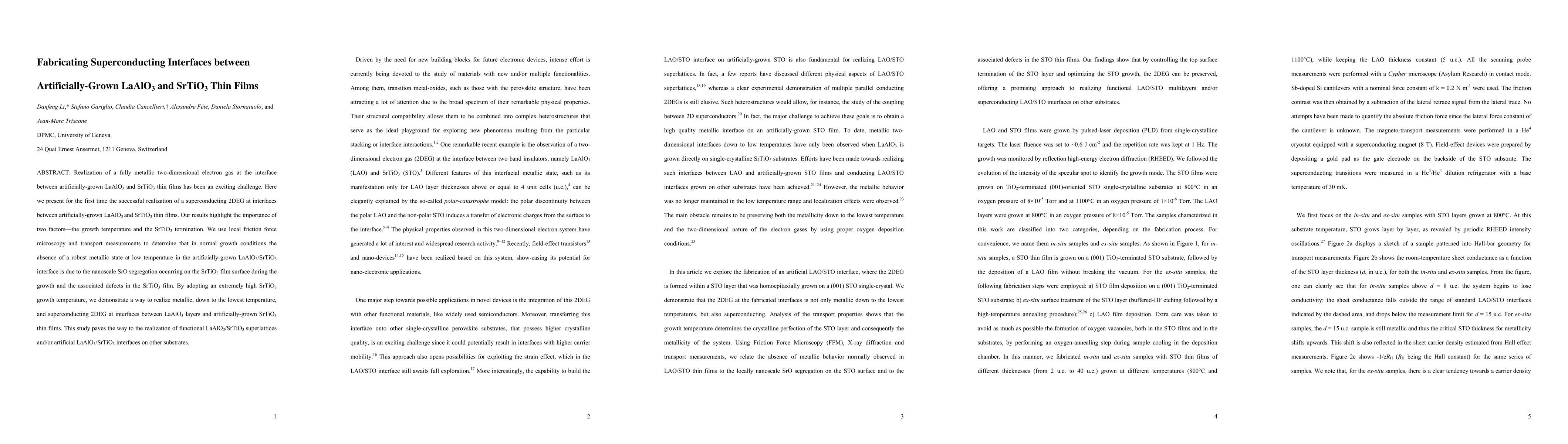 This research successfully fabricates a superconducting two-dimensional electron gas (2DEG) at the interface between LaAlO$_3$ and SrTiO$_3$ thin films, previously challenging to achieve. High growth temperatures and SrTiO$_3$ termination are crucial, overcoming nanoscale SrO segregation and associated defects for realizing a metallic and superconducting interface.