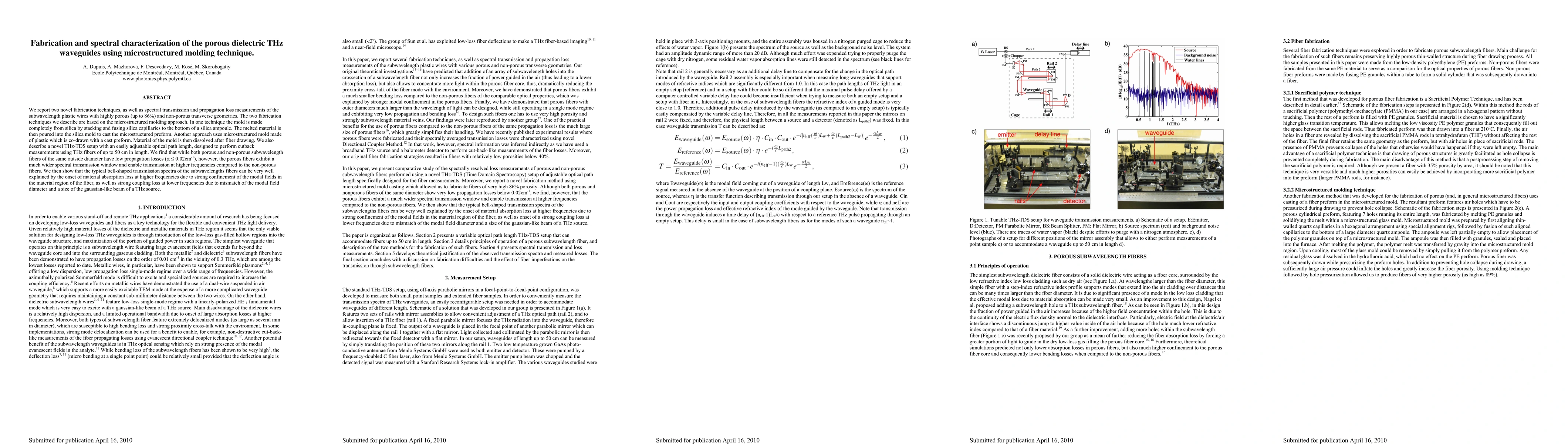 This paper presents two novel fabrication techniques for porous dielectric THz waveguides using microstructured molding, and measures their spectral transmission and propagation losses. Both techniques show low propagation losses but porous fibers exhibit a wider spectral transmission window and higher frequency transmission compared to non-porous fibers, attributed to material absorption and coupling losses.