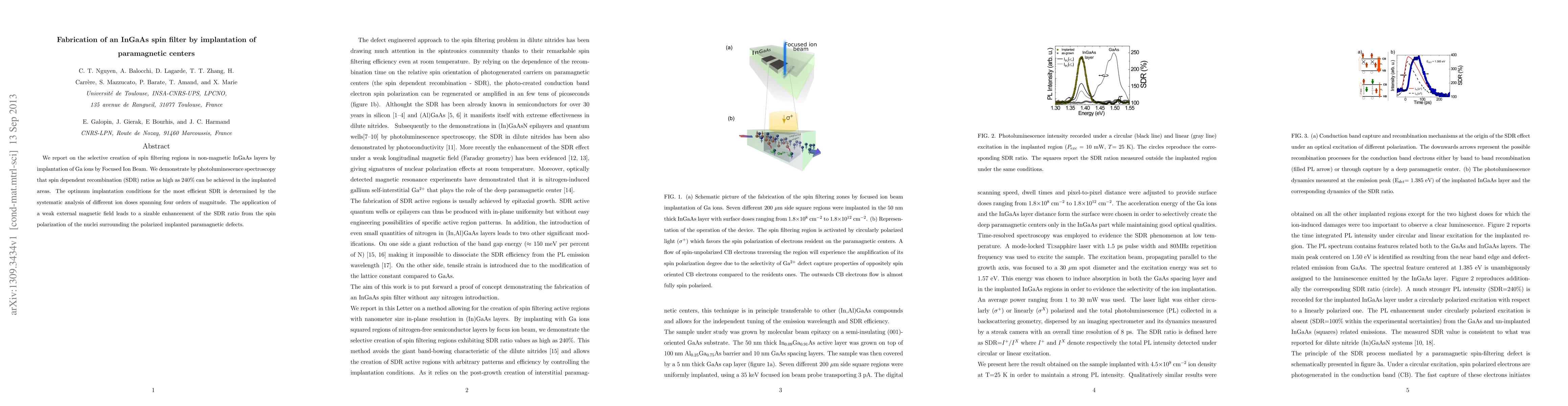 Researchers created spin filtering regions in InGaAs layers using Ga ion implantation, achieving high spin-dependent recombination ratios of up to 240%. This technology could lead to efficient spin-based devices with potential applications in quantum computing and optoelectronics.