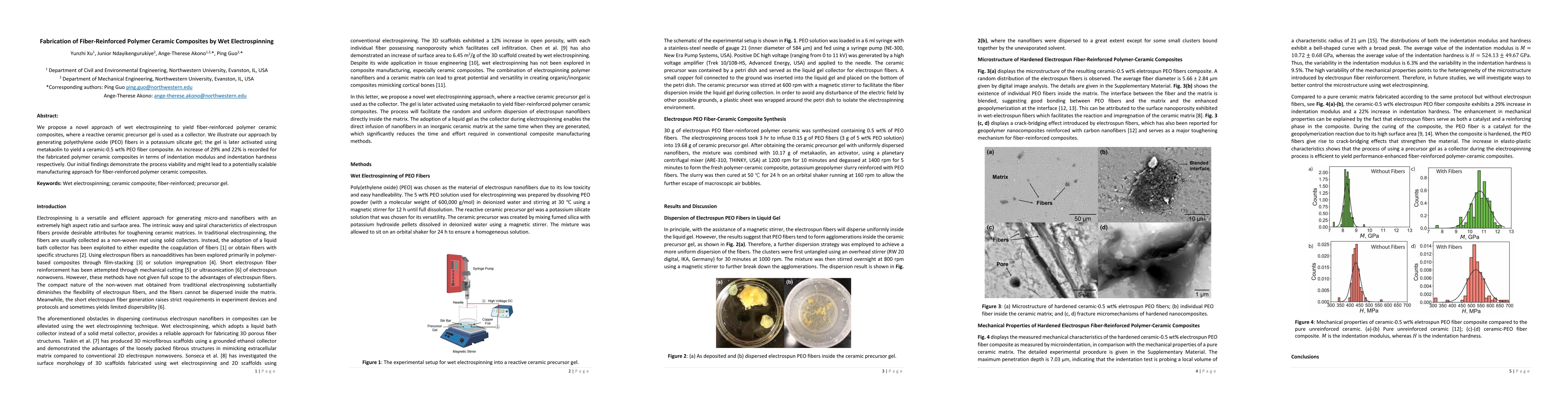 The main technical contribution of this study is the development of a novel wet electrospinning method for fabricating high-performance fiber-reinforced polymer-ceramic composites.