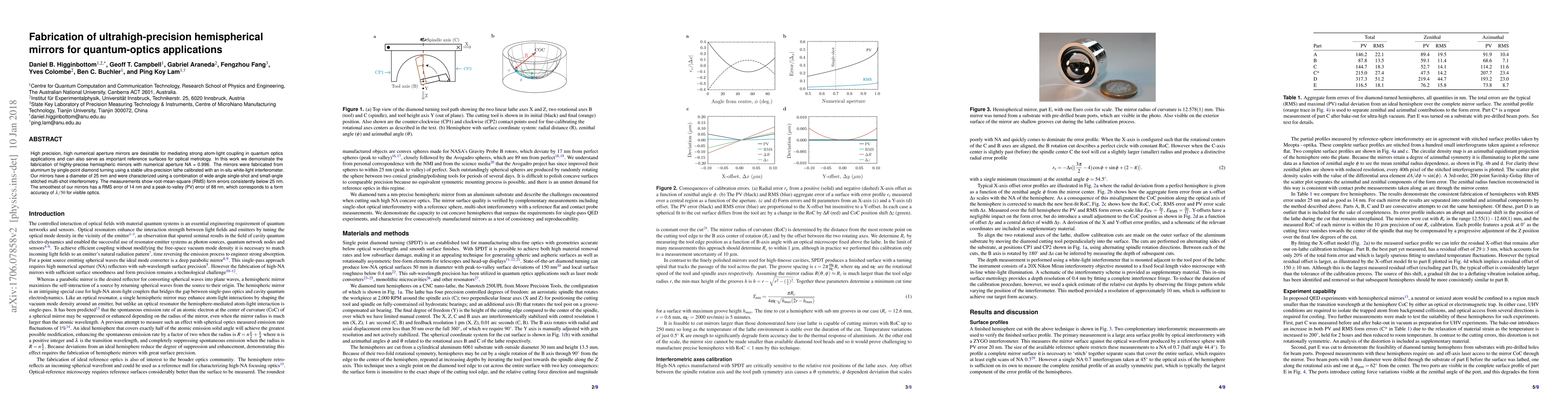 This research details the fabrication of high-precision hemispherical aluminum mirrors using single-point diamond turning on an ultra-precision lathe. These mirrors, with a 25mm diameter and NA = 0.996, exhibit RMS form errors below 25nm, and the smoothest achieved an RMS error of 14nm, making them suitable for quantum optics applications and optical metrology.