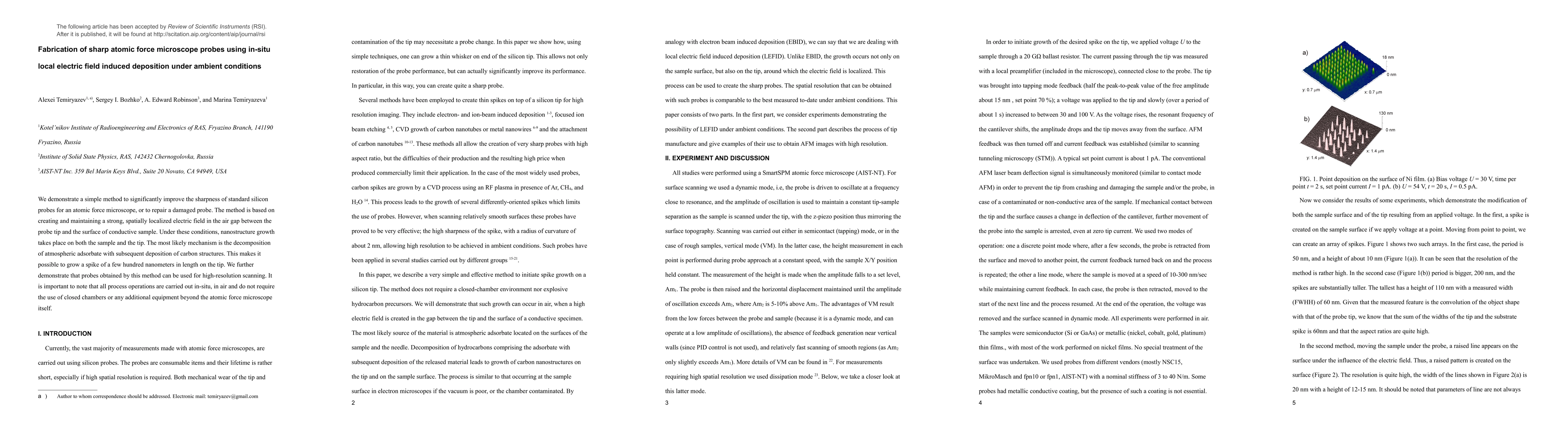 Researchers developed a method to sharpen atomic force microscope probes using in-situ local electric field induced deposition under ambient conditions, creating sharp tips without specialized equipment.