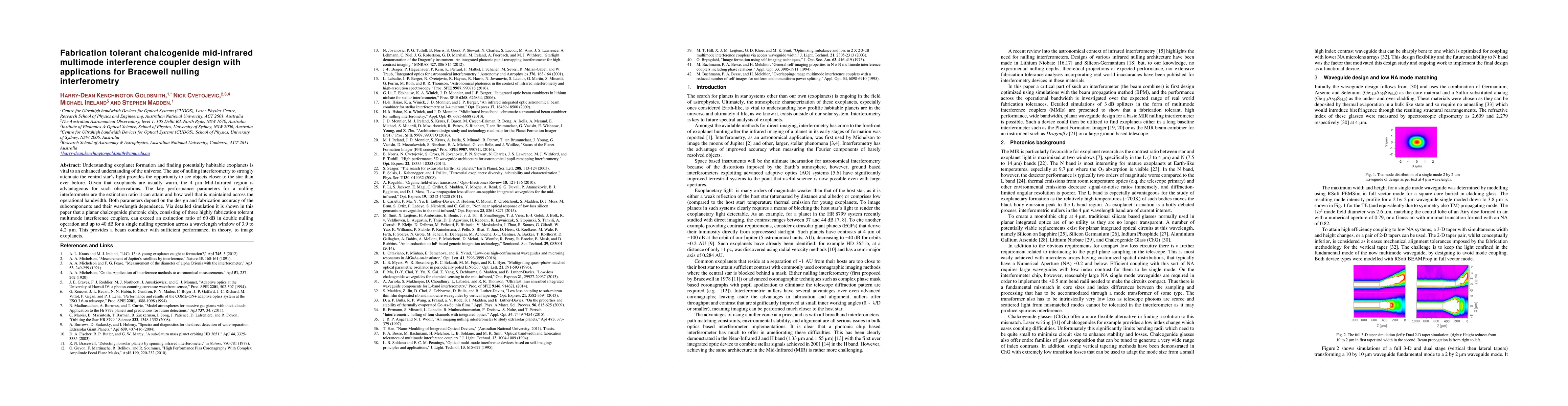 This paper presents a design for fabrication tolerant chalcogenide mid-infrared multimode interference couplers for use in nulling interferometry, achieving high extinction ratios of 60 dB in double nulling and 40 dB in single nulling across a 3.9 to 4.2 microns wavelength range, enabling improved exoplanet imaging.