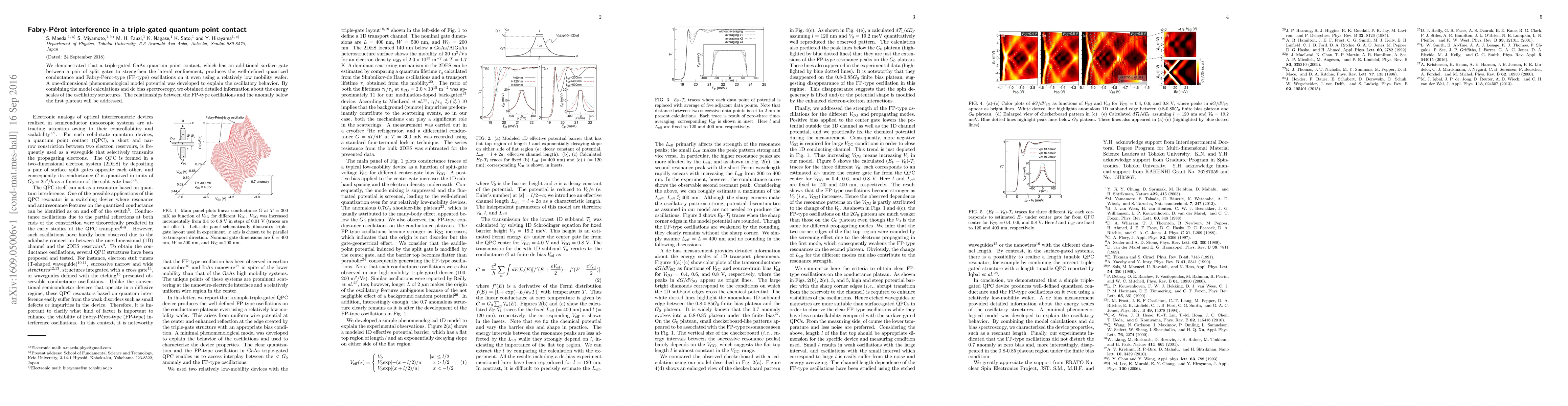 We demonstrated that a triple-gated GaAs quantum point contact, which has an additional surface gate between a pair of split gates to strengthen the lateral confinement, produces the well-defined quantized conductance and Fabry-P\'erot-type (FP-type) oscillations on it even using a relatively low mobility wafer. A one-dimensional phenomenological model potential was developed to explain the oscillatory behavior. By combining the model calculations and dc bias spectroscopy, we obtained detailed information about the energy scales of the oscillatory structures. The relationships between the FP-type oscillations and the anomaly below the first plateau will be addressed.