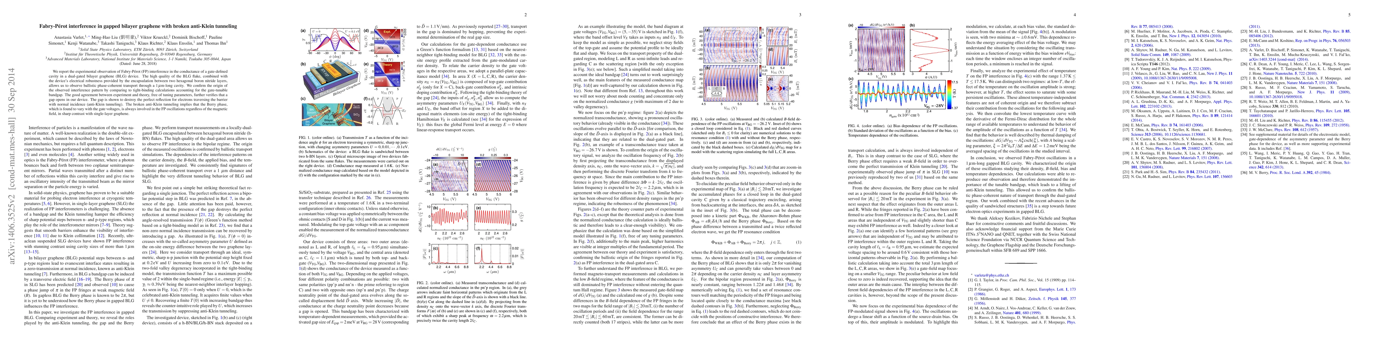 This paper reports the observation of Fabry-Pérot interference in a dual-gated bilayer graphene device encapsulated between hexagonal boron nitride layers, demonstrating ballistic transport through a 1μm cavity. The study reveals the opening of a gate-tunable bandgap that disrupts anti-Klein tunneling, leading to phase-coherent oscillations dependent on the Berry phase.