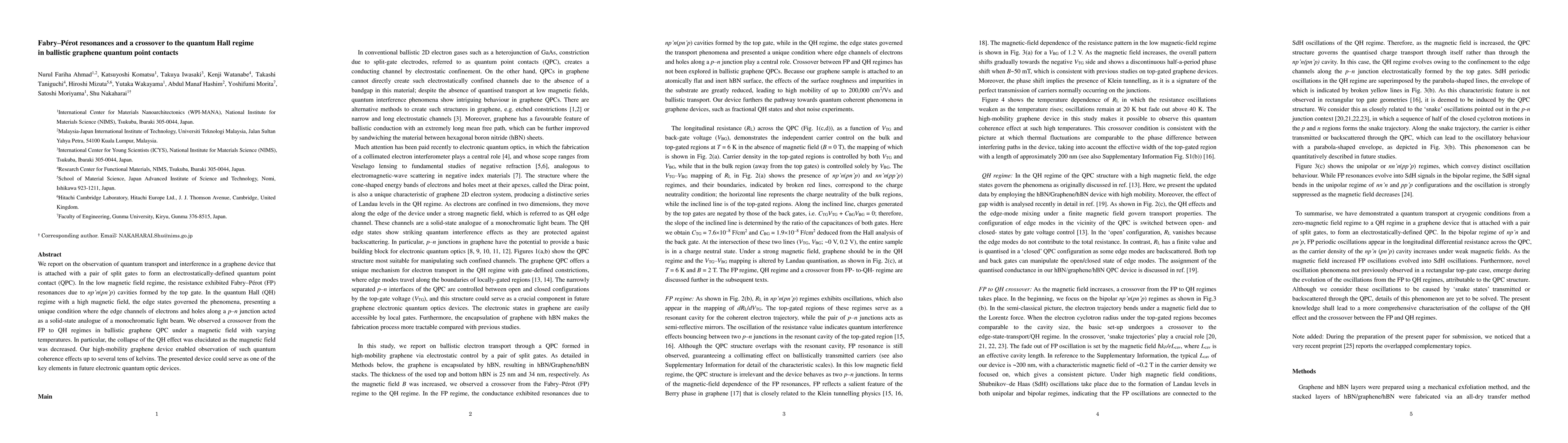 This paper reports on the observation of quantum transport and interference in a graphene quantum point contact, showing a crossover from Fabry-Pérot resonances to the quantum Hall regime under varying magnetic fields and temperatures. The study highlights the potential of such devices for future quantum optic applications.