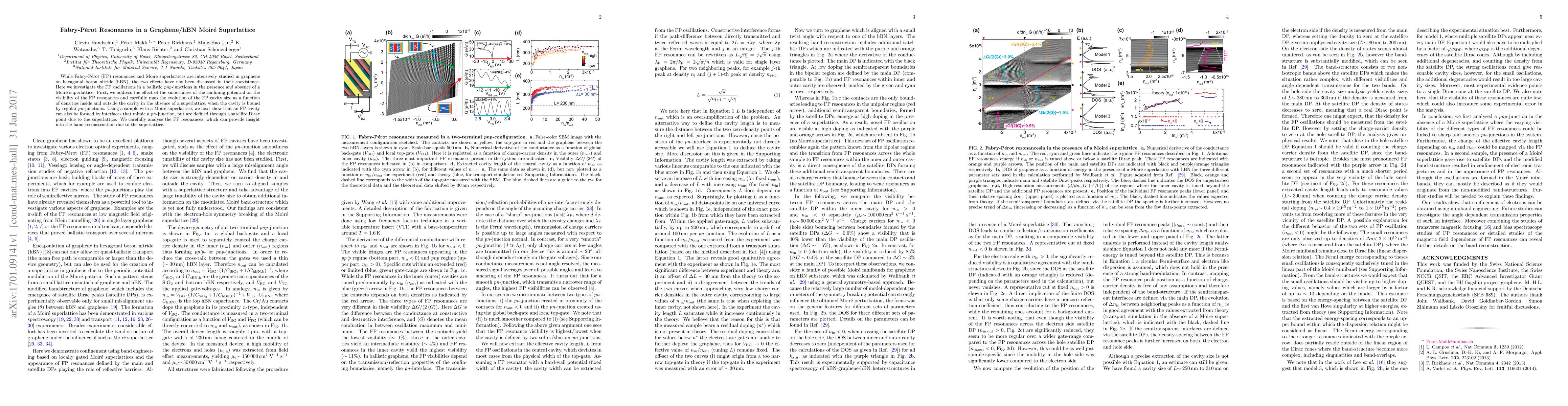 While Fabry-P\'erot resonances and Moir\'e superlattices are intensively studied in graphene on hexagonal boron nitride (hBN), the two effects have not been discussed in their coexistence. Here we investigate the FP oscillations in a ballistic pnp-junctions in the presence and absence of a Moir\'e superlattice. First, we address the effect of the smoothness of the confining potential on the visibility of the FP resonances and carefully map the evolution of the FP cavity size as a function of densities in and outside the cavity in the absence of a superlattice, when the cavity is bound by regular pn-junctions. Using a sample with a Moir\'e superlattice, we next show that a FP cavity can also be formed by interfaces that mimic a pn-junction, but are defined through a satellite Dirac point due to the superlattice. We carefully analyse the FP resonances, which can provide insight into the band-reconstruction due to the superlattice.