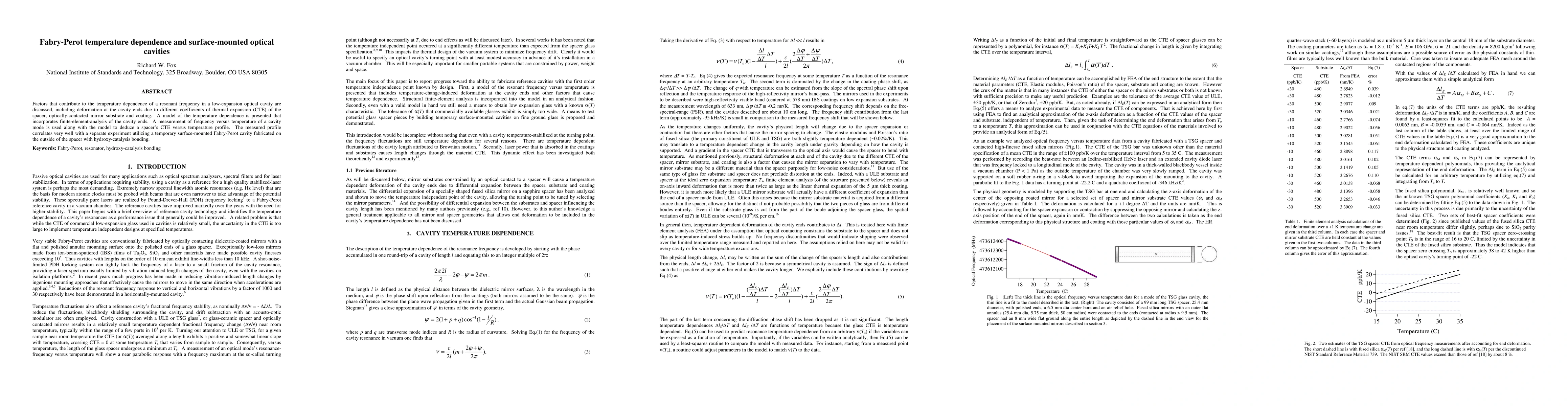 This paper discusses factors influencing the temperature dependence of resonant frequency in low-expansion optical cavities, modeling the deformation due to differing thermal expansion coefficients. A finite-element analysis and experimental frequency measurements are used to deduce the spacer's thermal expansion profile, which aligns with results from a separate surface-mounted Fabry-Perot cavity test.
