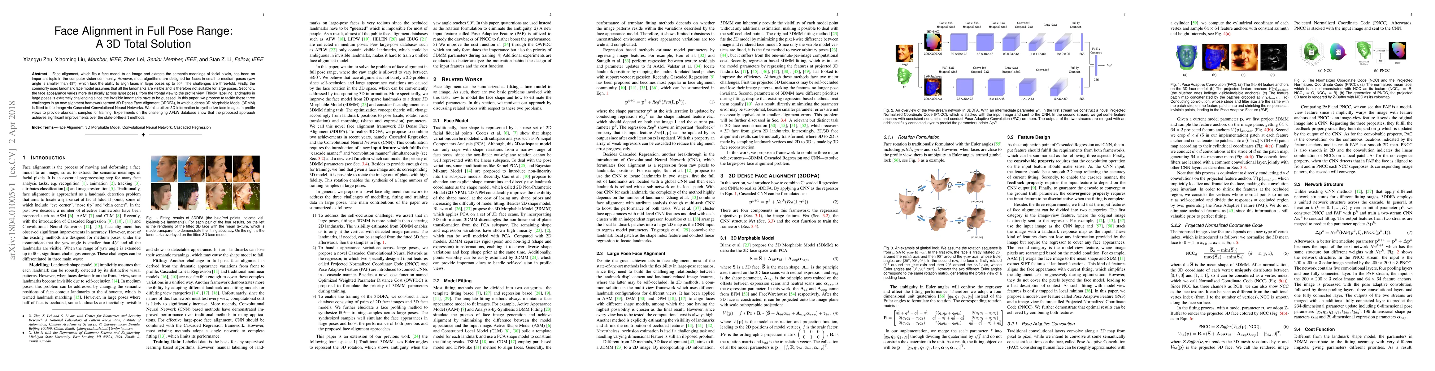 A new 3D face alignment method, 3DDFA, overcomes challenges in aligning faces in large poses by using a dense 3D Morphable Model and synthesizing images in profile views.