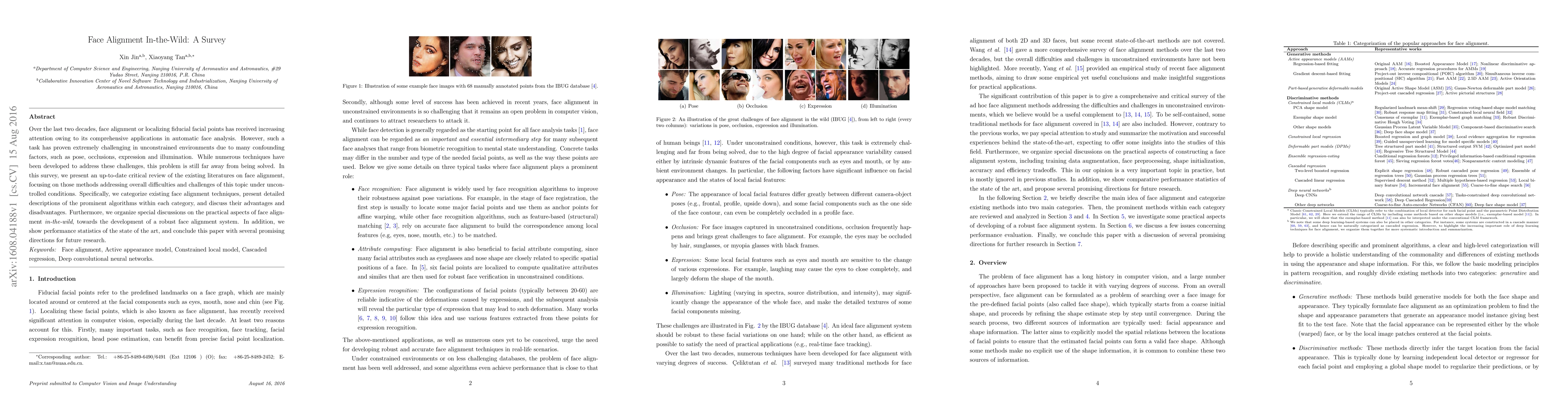 This survey critically reviews face alignment techniques, particularly those tackling challenges in unconstrained environments, and categorizes prominent algorithms, discussing their pros and cons. It also highlights future research directions and performance statistics of the state-of-the-art.