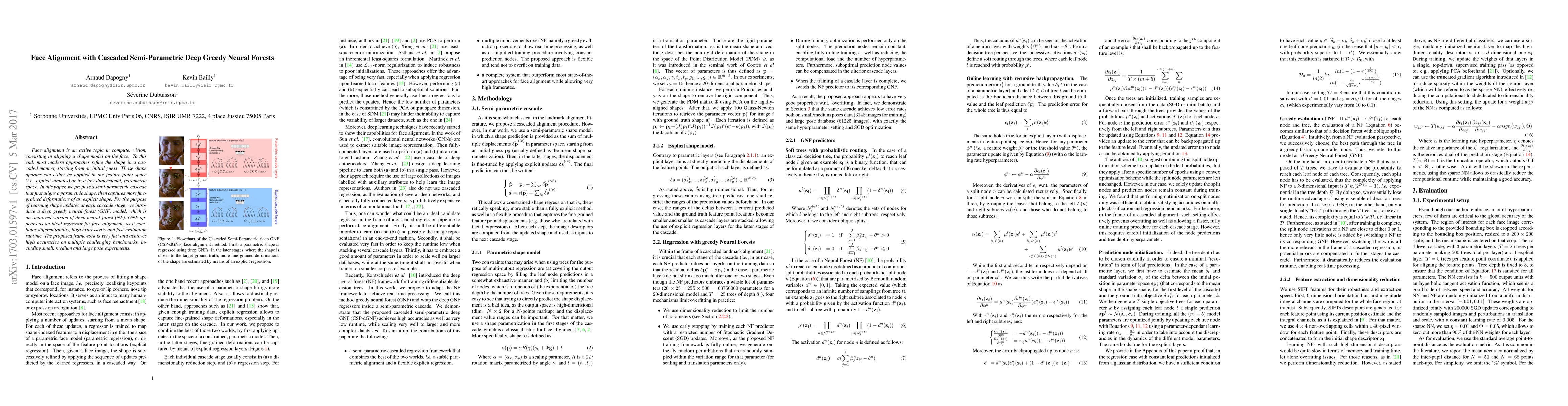A new approach to face alignment uses a semi-parametric cascade with deep greedy neural forests for fast and accurate results. This method combines the benefits of parametric shape updates and explicit feature point space refinements.