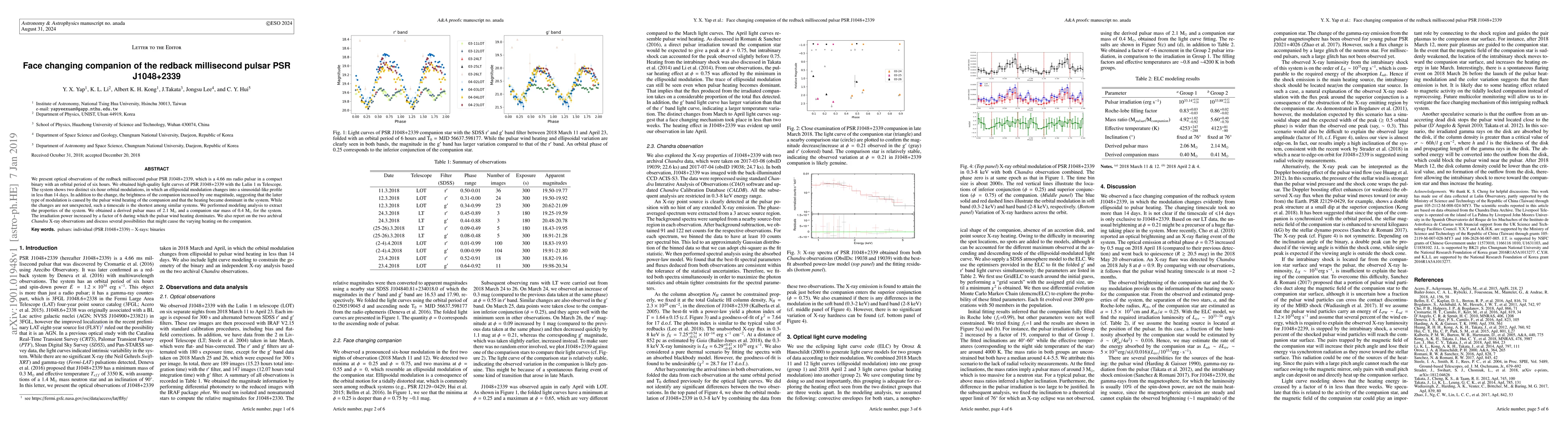 This paper reports on optical observations of the redback millisecond pulsar PSR J1048+2339, revealing rapid orbital modulation changes and a significant increase in the companion star's brightness, suggesting pulsar wind heating dominance within the shortest timescale observed in similar systems. The study derives a pulsar mass of 2.1 M$_{\odot }$ and a companion mass of 0.4 M$_{\odot }$.