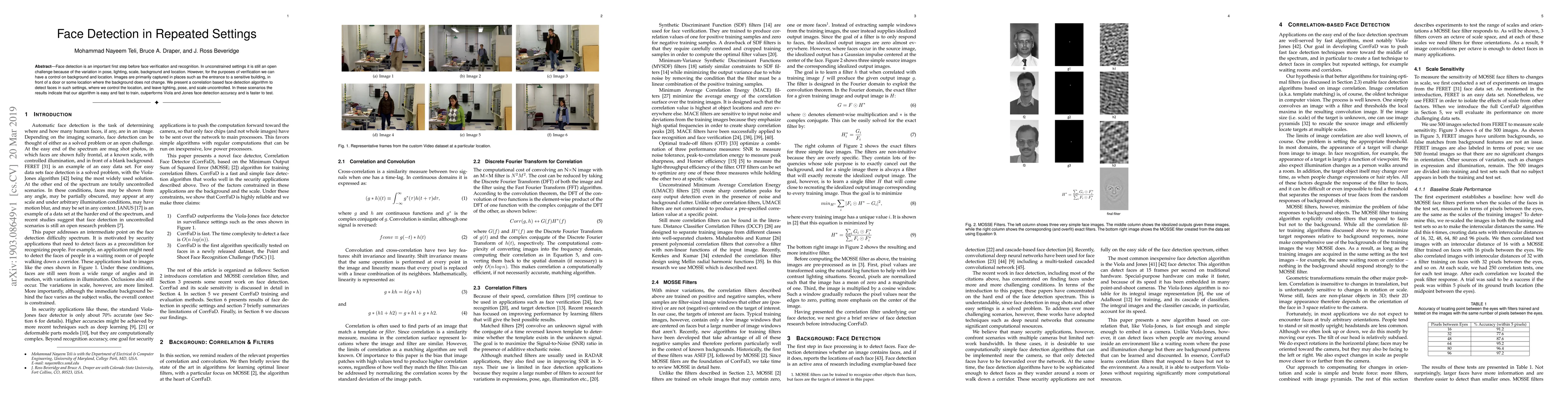 Face detection is an important first step before face verification and recognition. In unconstrained settings it is still an open challenge because of the variation in pose, lighting, scale, background and location. However, for the purposes of verification we can have a control on background and location. Images are primarily captured in places such as the entrance to a sensitive building, in front of a door or some location where the background does not change. We present a correlation based face detection algorithm to detect faces in such settings, where we control the location, and leave lighting, pose, and scale uncontrolled. In these scenarios the results indicate that our algorithm is easy and fast to train, outperforms Viola and Jones face detection accuracy and is faster to test.