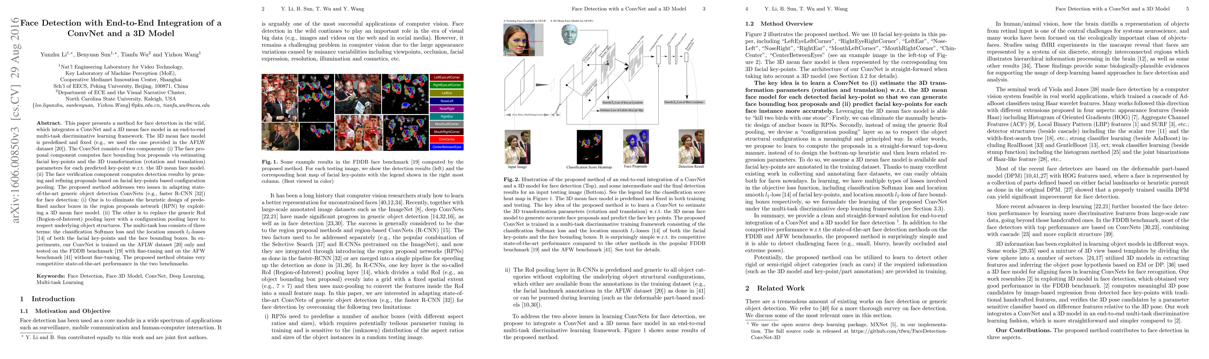 This paper proposes an end-to-end method for face detection that integrates a ConvNet with a 3D mean face model, eliminating predefined anchor boxes and using configuration pooling for refined detections. The method achieves competitive performance on benchmark datasets.