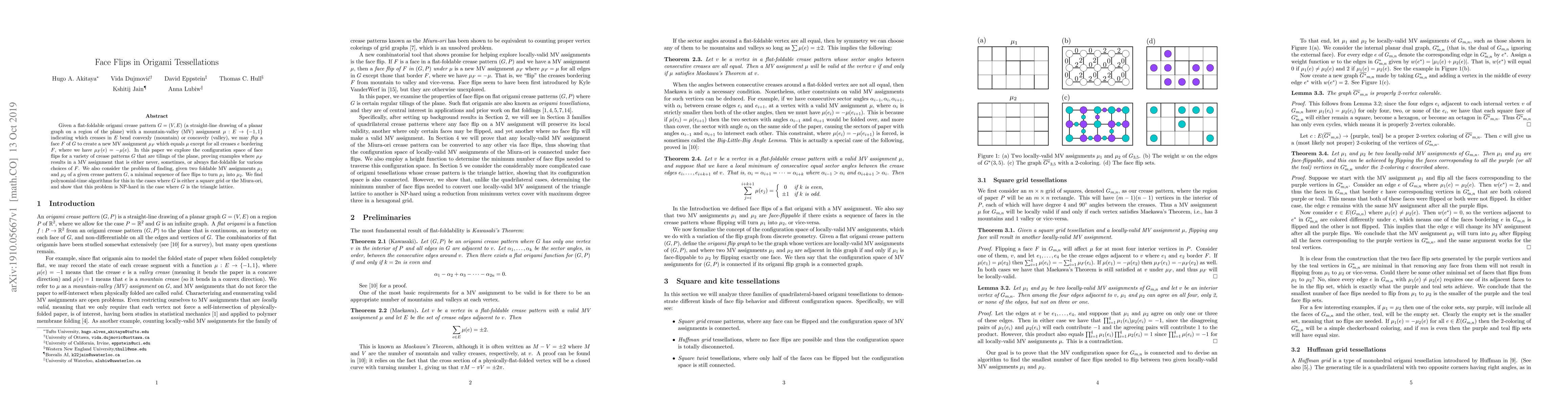 Researchers explored face flips in origami tessellations, finding that certain patterns can lead to flat-foldable assignments, while others result in non-foldable configurations, with algorithms for transforming between foldable assignments and a proof of NP-hardness in some cases.