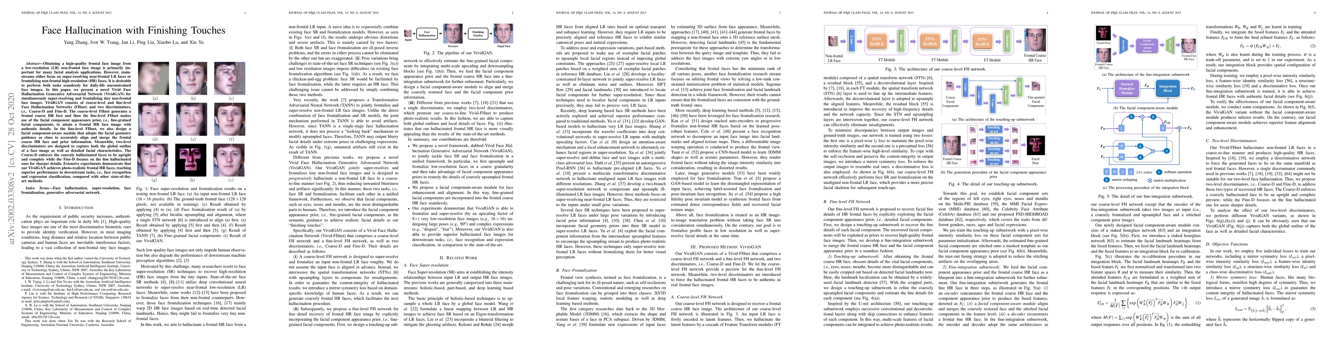 Obtaining a high-quality frontal face image from a low-resolution (LR) non-frontal face image is primarily important for many facial analysis applications. However, mainstreams either focus on super-resolving near-frontal LR faces or frontalizing non-frontal high-resolution (HR) faces. It is desirable to perform both tasks seamlessly for daily-life unconstrained face images. In this paper, we present a novel Vivid Face Hallucination Generative Adversarial Network (VividGAN) for simultaneously super-resolving and frontalizing tiny non-frontal face images. VividGAN consists of coarse-level and fine-level Face Hallucination Networks (FHnet) and two discriminators, i.e., Coarse-D and Fine-D. The coarse-level FHnet generates a frontal coarse HR face and then the fine-level FHnet makes use of the facial component appearance prior, i.e., fine-grained facial components, to attain a frontal HR face image with authentic details. In the fine-level FHnet, we also design a facial component-aware module that adopts the facial geometry guidance as clues to accurately align and merge the frontal coarse HR face and prior information. Meanwhile, two-level discriminators are designed to capture both the global outline of a face image as well as detailed facial characteristics. The Coarse-D enforces the coarsely hallucinated faces to be upright and complete while the Fine-D focuses on the fine hallucinated ones for sharper details. Extensive experiments demonstrate that our VividGAN achieves photo-realistic frontal HR faces, reaching superior performance in downstream tasks, i.e., face recognition and expression classification, compared with other state-of-the-art methods.