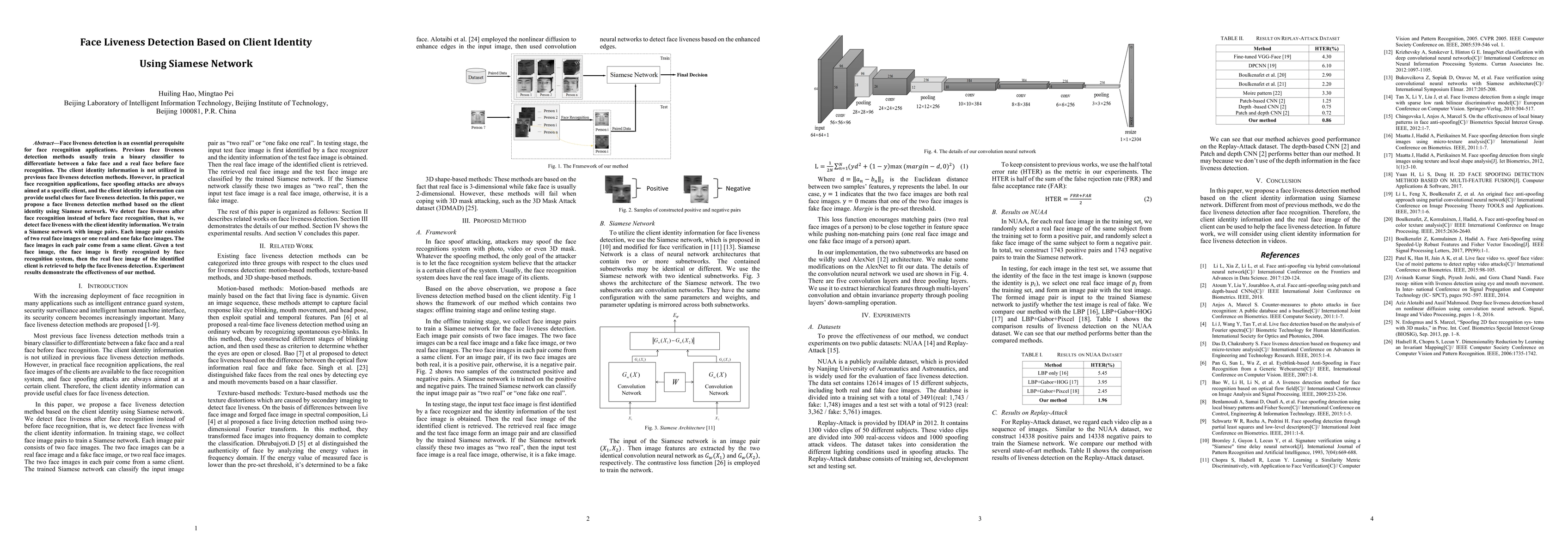 This paper proposes a face liveness detection method using a Siamese network that leverages client identity information to enhance detection accuracy. The method detects liveness post-face recognition, utilizing client identity to differentiate between real and fake faces, showing improved effectiveness in experiments.